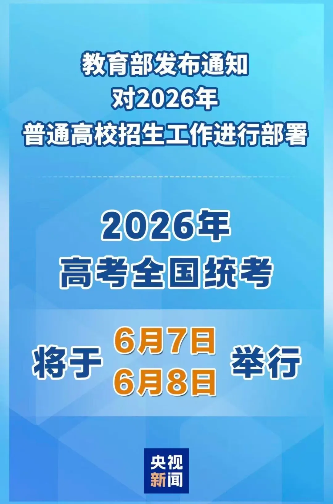 根据教育部信息,2026年6月7日、8日进行秋季高考。