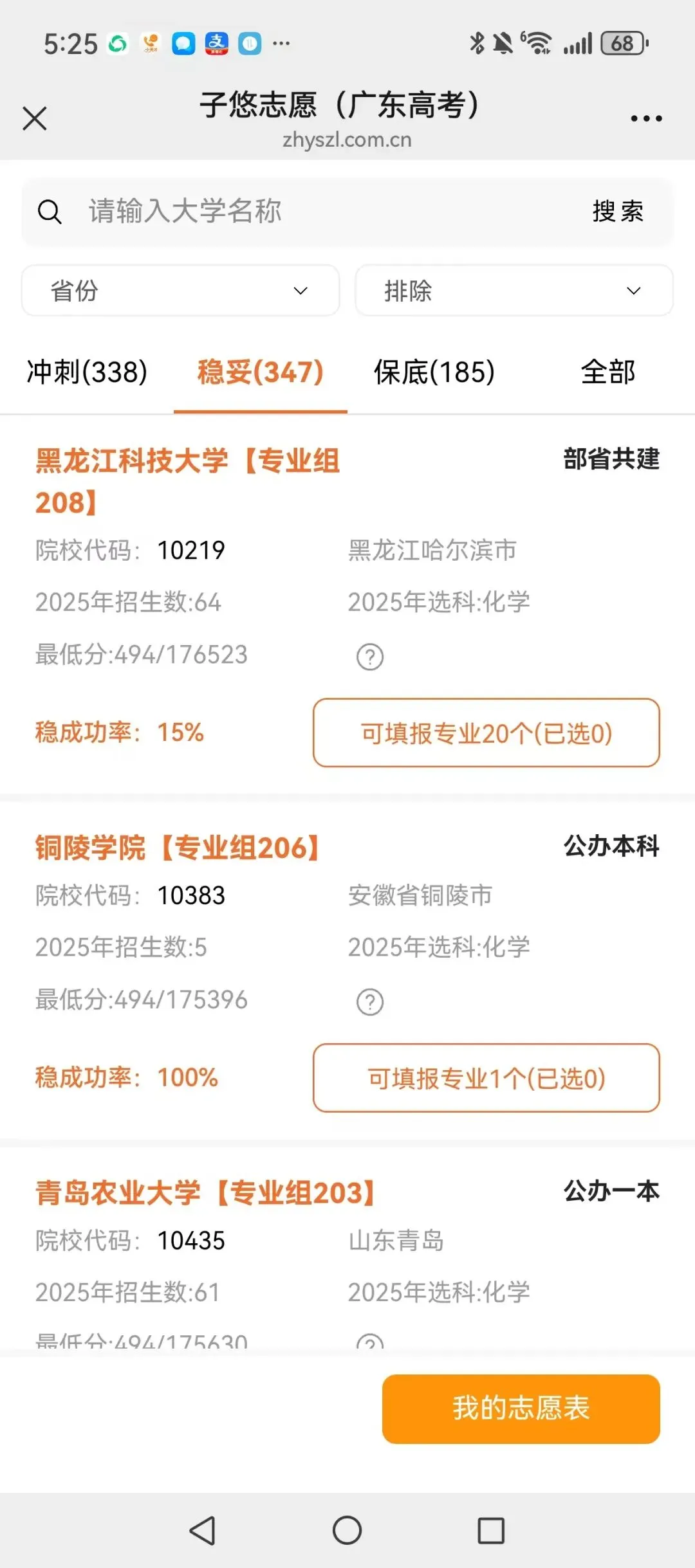 一键模拟志愿填报、稳冲保大学