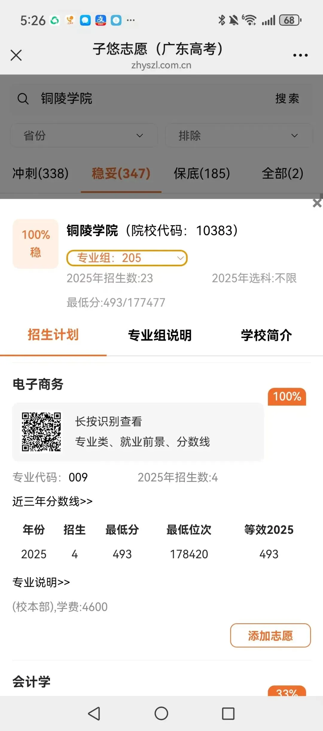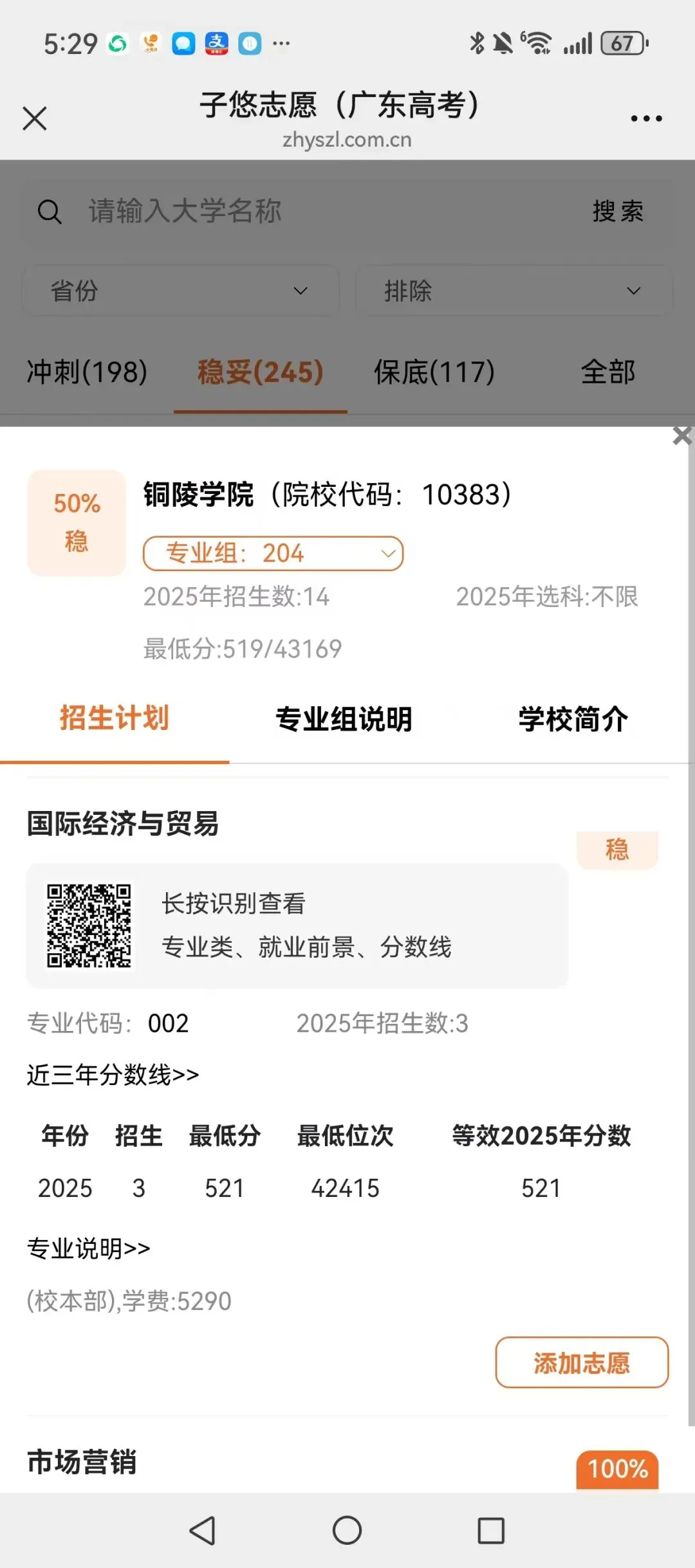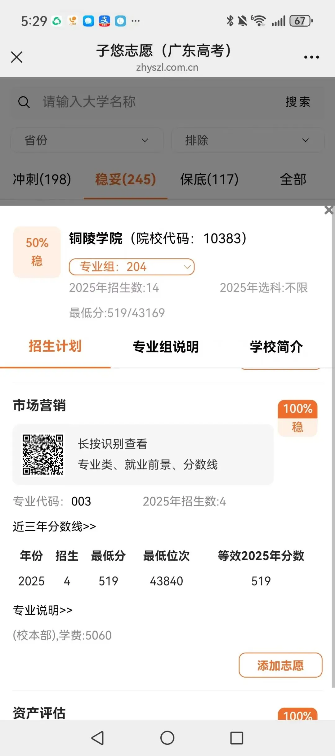 识别左侧二维码,查大学、查专业