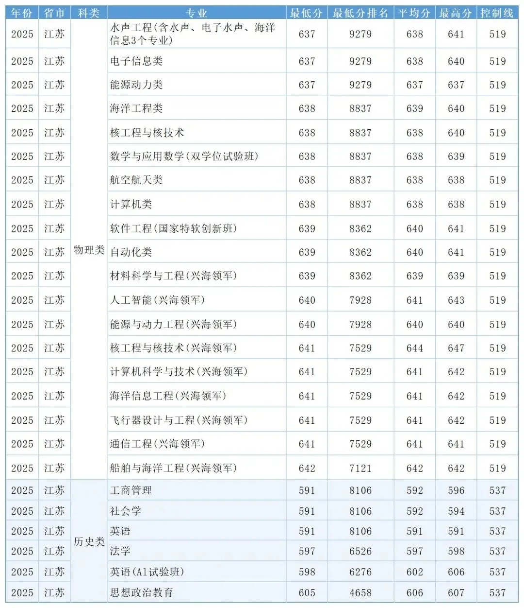 最高647分!哈尔滨工程大学2025年录取专业分公布!
