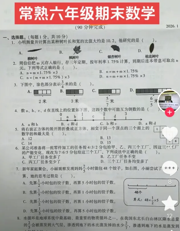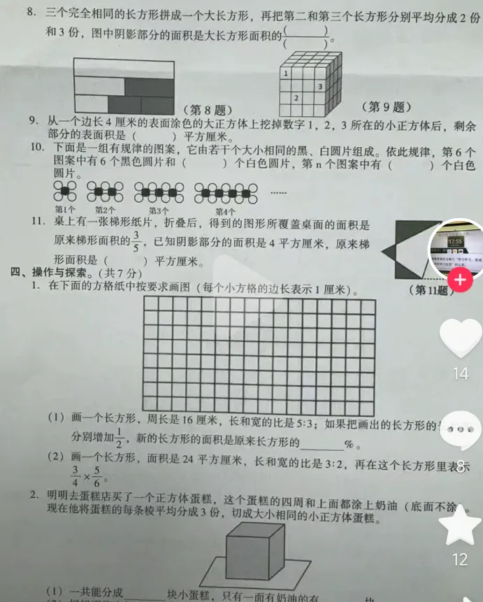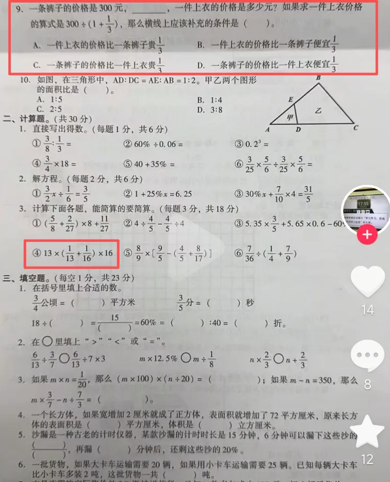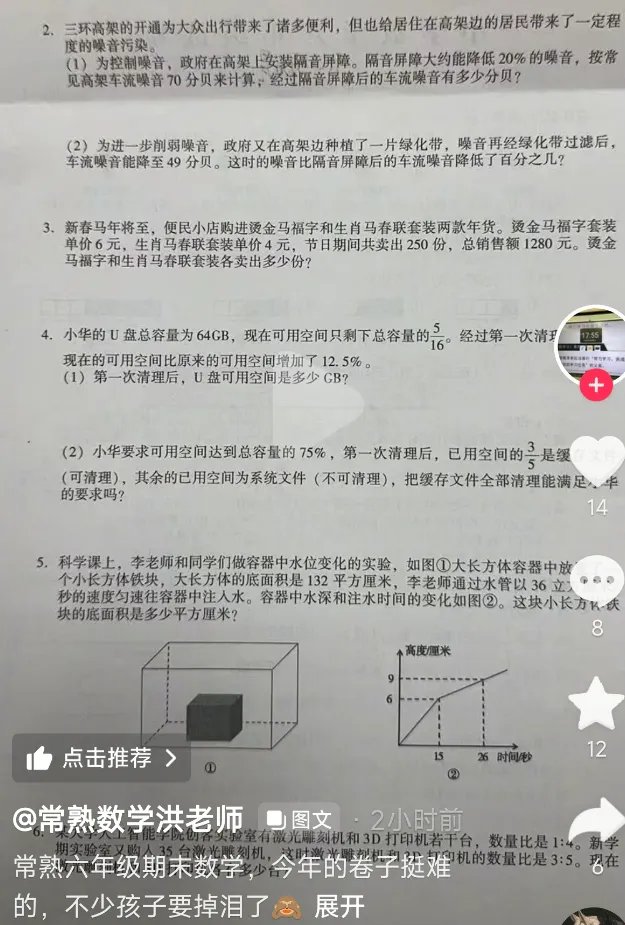 昨天苏州这边的小学期末考试结束了,去接孩子的路上一路听到这次数学考试难爆了,更有小部分孩子梨花带雨,晚上看看朋友圈,看看抖音原来不单一个年级,基本每个年级难度都很大,找了试卷大概扫了几眼,确实感觉都不是善茬,哪怕是基础计算都是有那种易错题,一不小心就被误导了,随便截几个图看下,基本脑子都要转几下