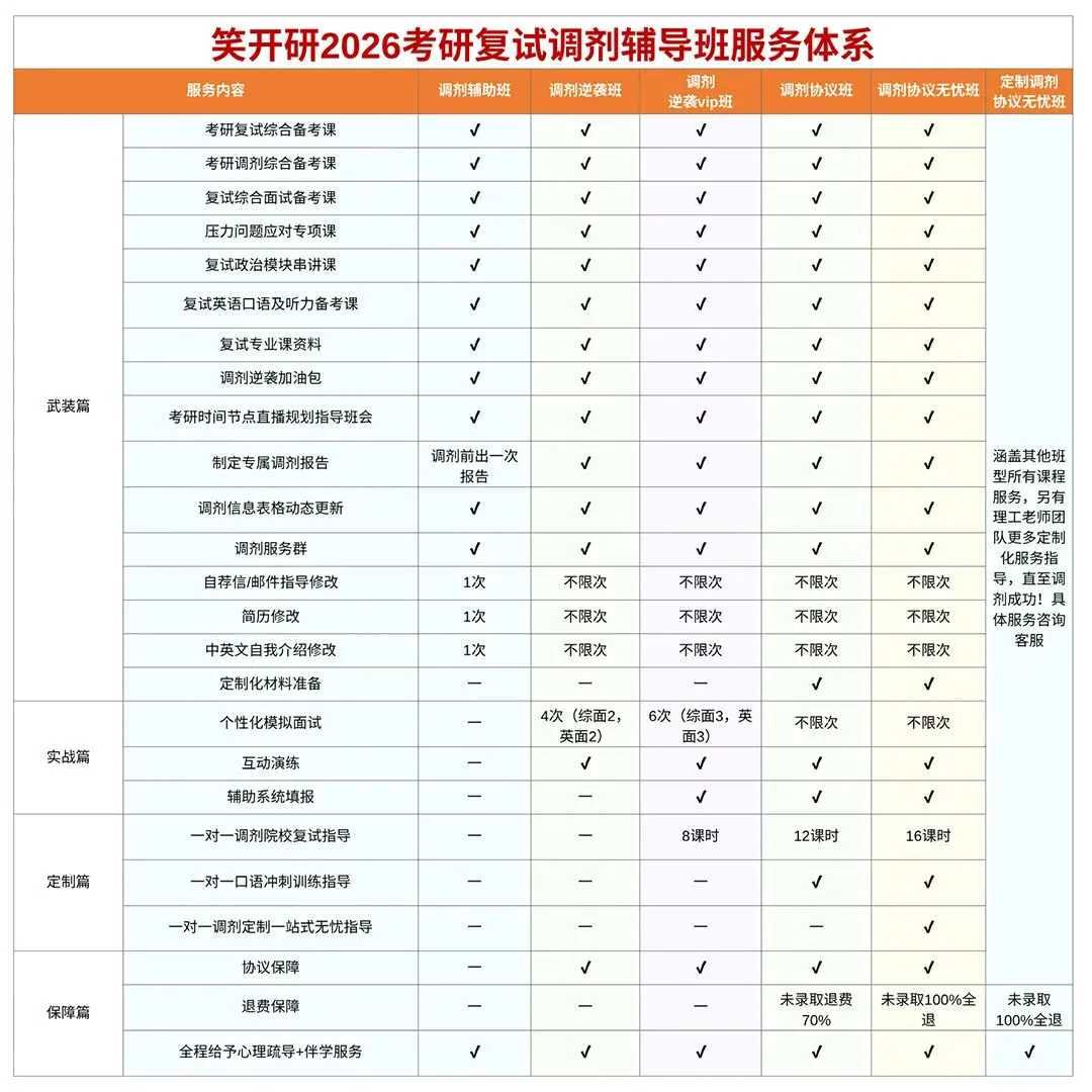 若自主备考缺乏方向,可借助针对性辅导课程精准发力,咱们笑开研26考研复试课程体系,核心优势如下: