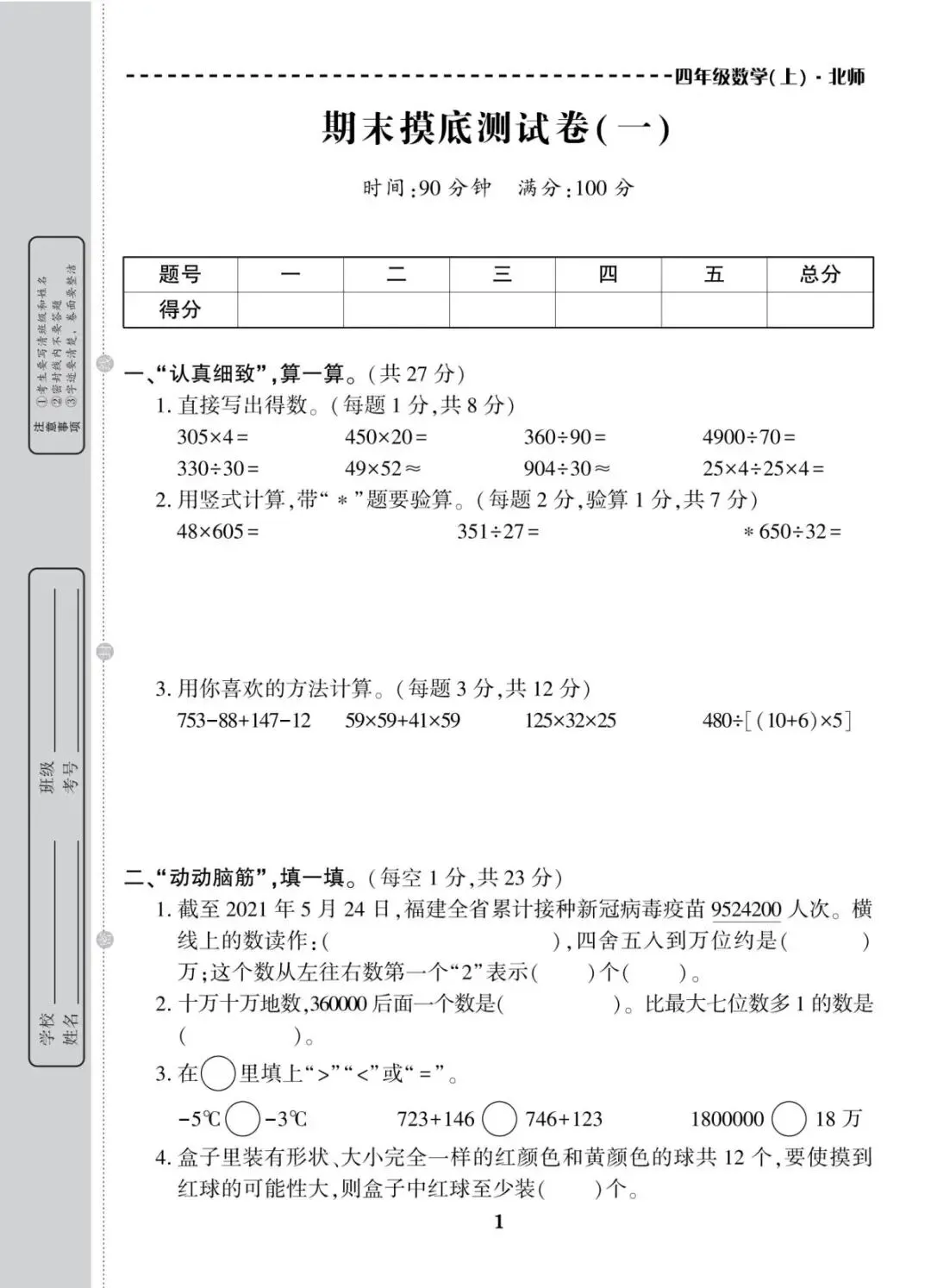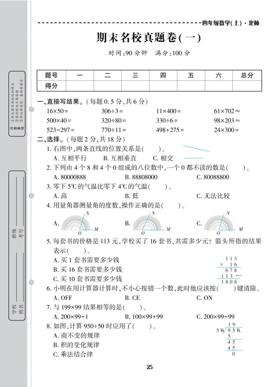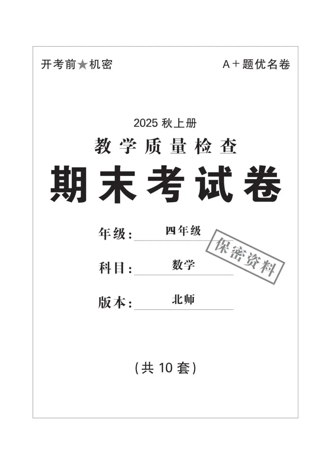 四年级上册北师大版数学期末考试冲刺试卷,共10套带有(附)答案,电子版可下载可打印,这份期末真题复习冲测试卷,全覆盖大数认识、线与角、三位数乘两位数、除数两位数的除法、运算律等核心重难点。精准定位知识漏洞,帮娃扎实备战期末考试!