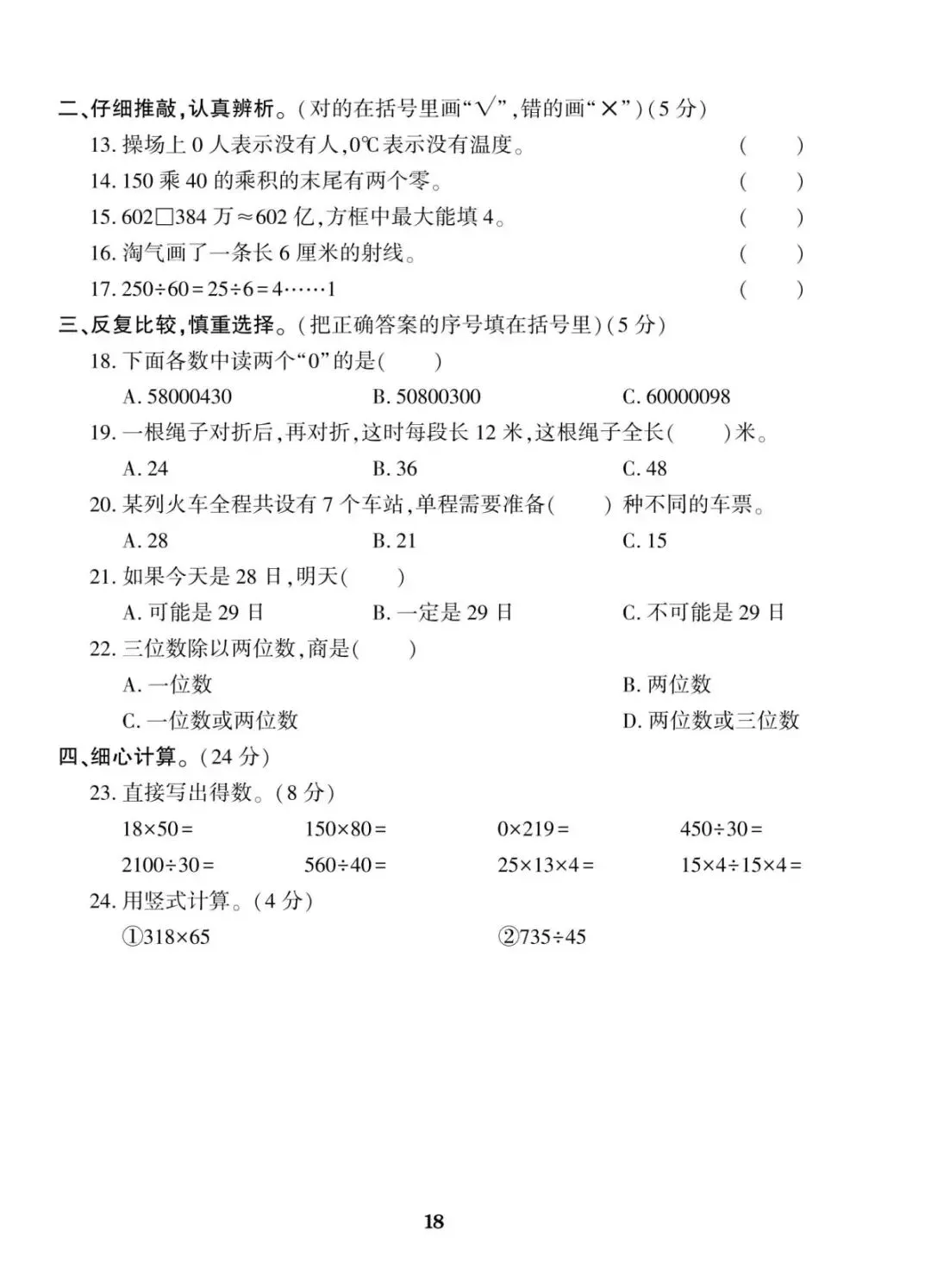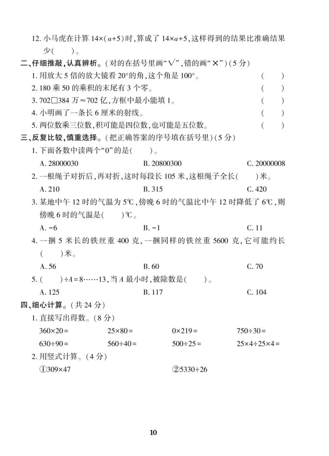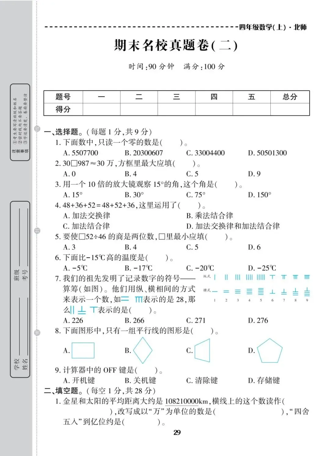四年级上册北师大版数学期末考试冲刺试卷,共10套带有(附)答案,电子版可下载可打印,这份期末真题复习冲测试卷,全覆盖大数认识、线与角、三位数乘两位数、除数两位数的除法、运算律等核心重难点。精准定位知识漏洞,帮娃扎实备战期末考试!