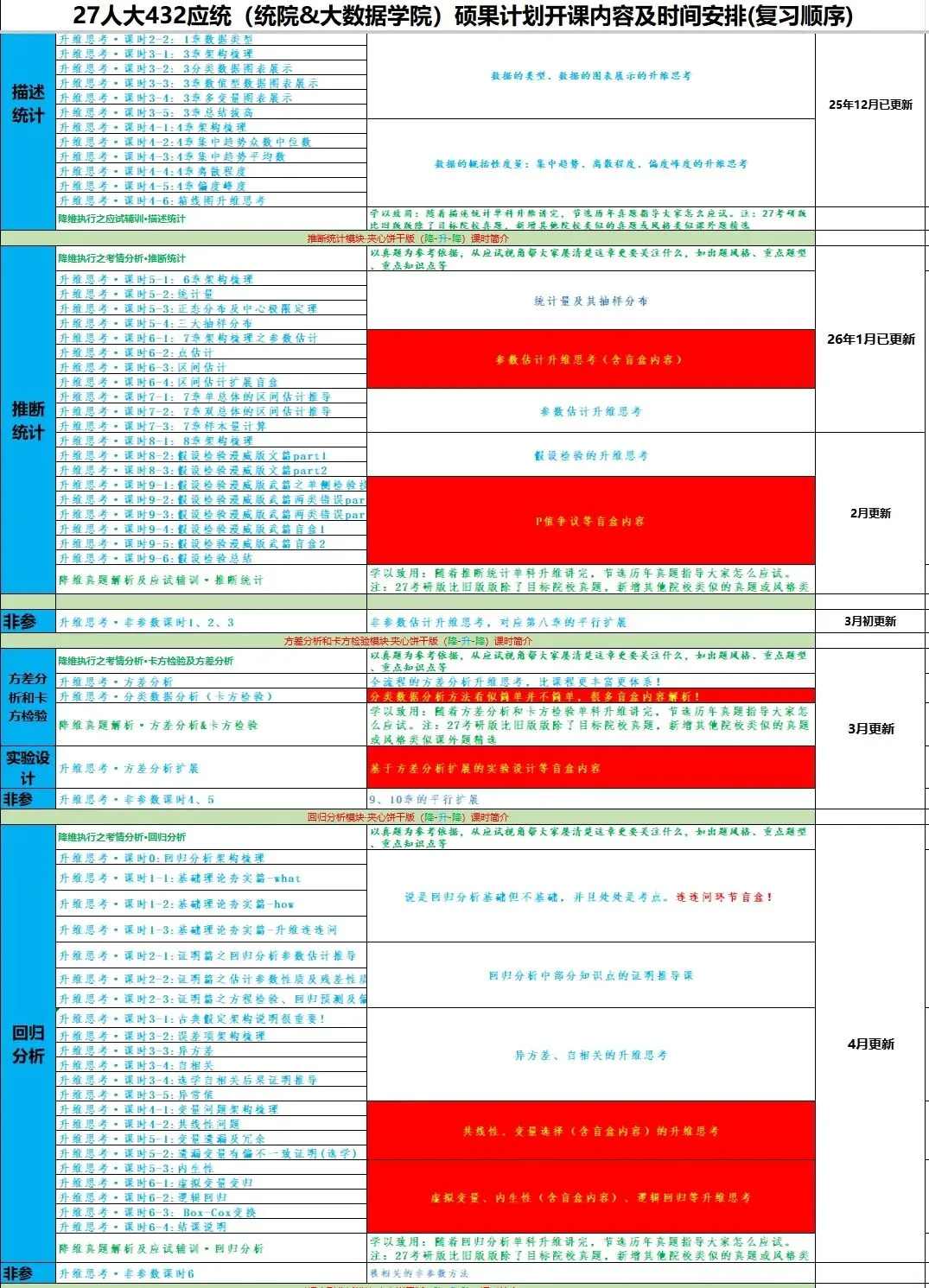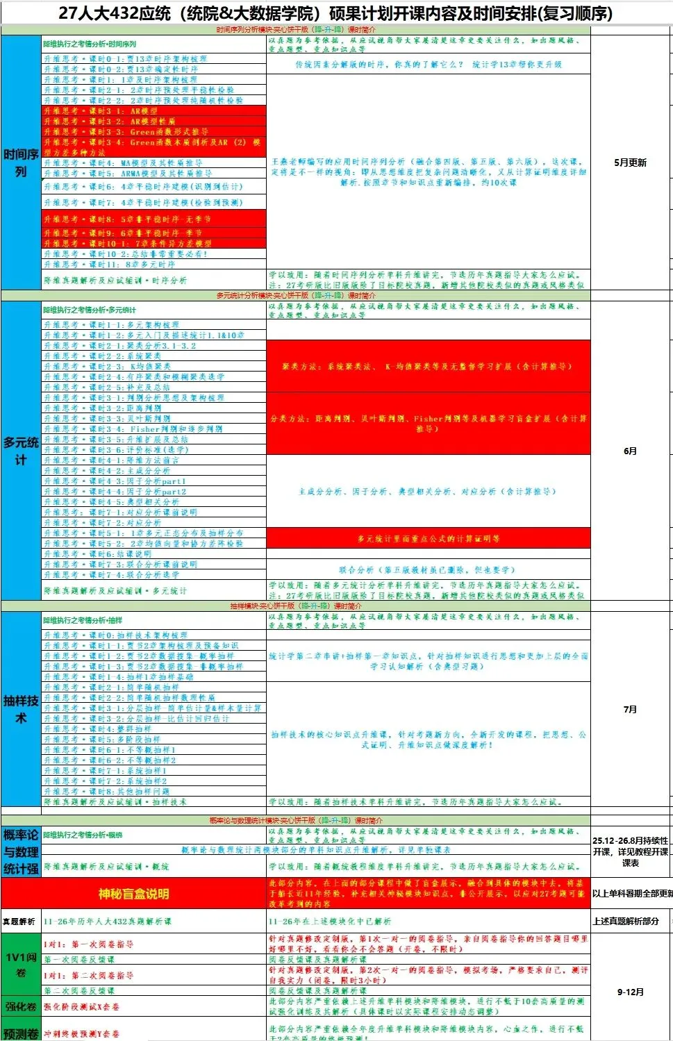 27硕果计划将在25年12月、26年1-3月、4-6月、暑期、9-11强化、12月冲刺阶段适时结合如下课表内容进行周更新模式的授课~目前根据如下课表的时间排期开课进行中。