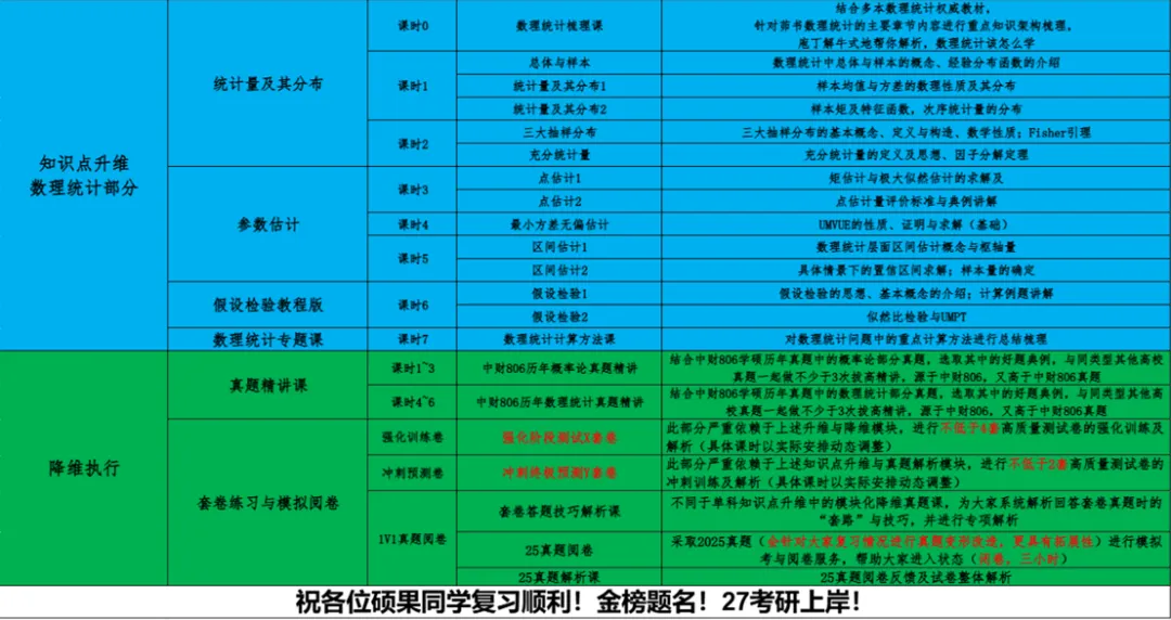各位27考研有意向中央财经大学的小伙伴好,27版中财806数理统计硕果计划今天正式发布!其中最大的亮点在于结合团队10+年考研辅导经验推出“里应外合”的教学模式: