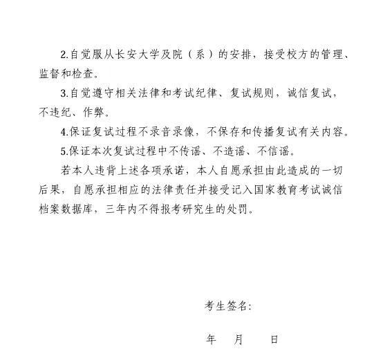 ⑦复试诚信承诺书,具体格式和提交要求以报考院校通知为准。