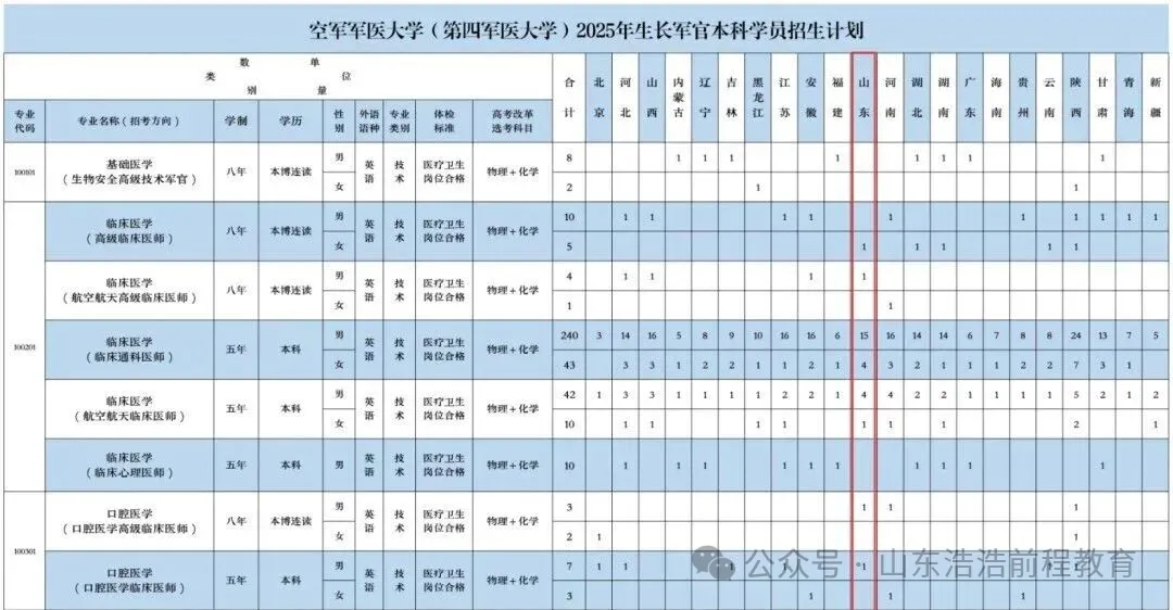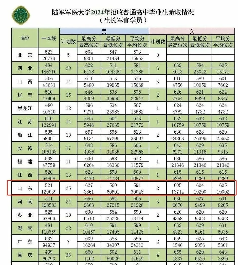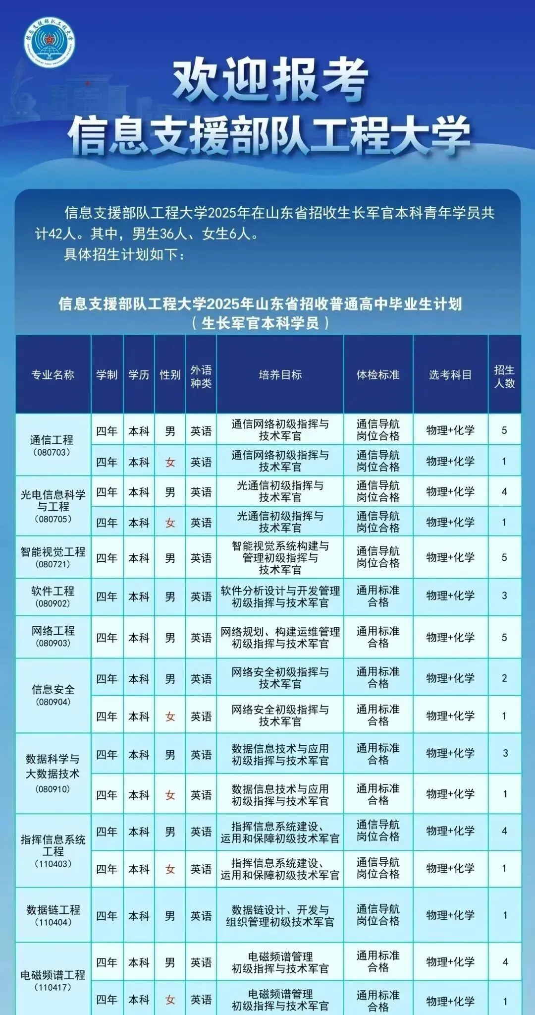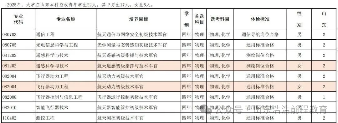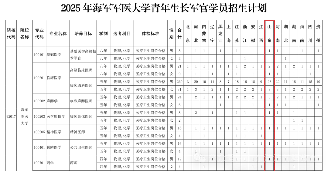 2025年全军22所军校在山东共投放招生计划1250人,整体规模稳定,为考生提供了充足的录取机会 。其中男生计划1156人,女生计划94人;