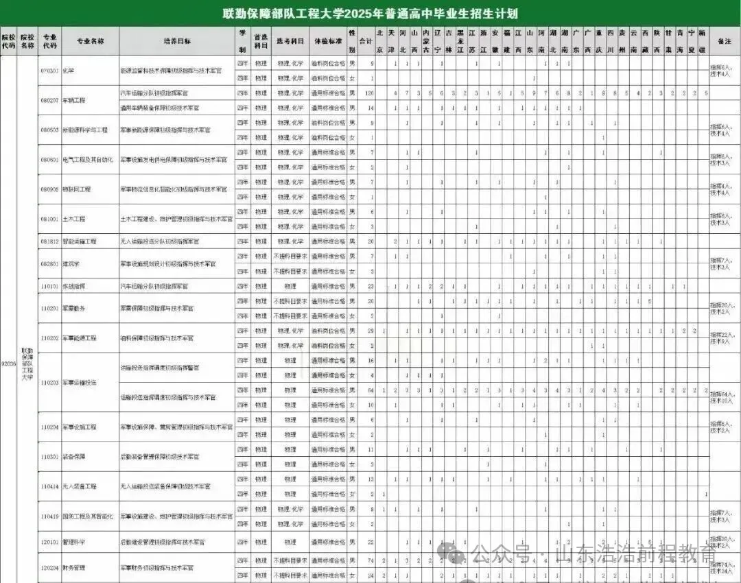 联勤保障部队工程大学:以陆军勤务学院、陆军军事交通学院本部及所属汽车士官学校为基础组建(上图中招生计划已合并2024年)