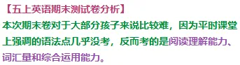 儿子五年级上学期的期末英语考试,本以为和以往的期末考试一样very easy,没想到当天晚上老师发出消息说“这次考试比较难”,而原因就在于“语法几乎没考,考的是阅读理解、词汇量和综合运用能力”。