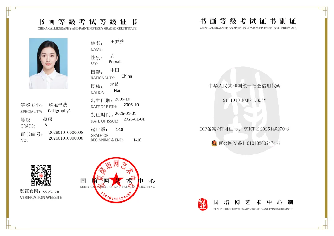 (1)首次报考级别为1-6级,6级以上逐级报考,并附上一次考级证书复印件。提示考生在授课教师的指导下,依据国培网艺术中心(CCPT中国书画考级)的书法美术考级大纲科学报考,切忌盲目!