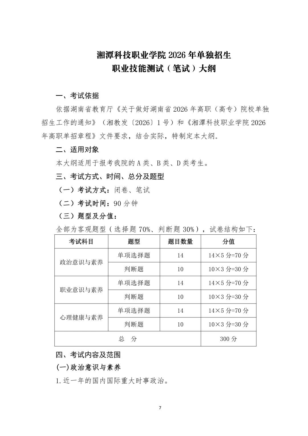 >单招季|湘潭科技职业学院2026年单招考试大纲