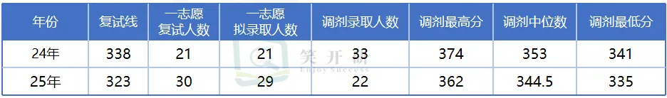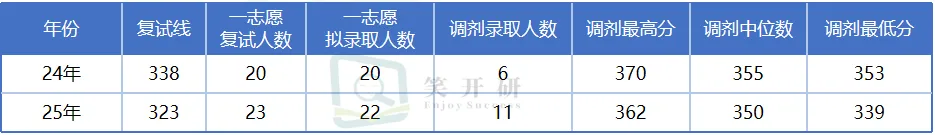 这所院校这两年都有调剂名额,但是调剂热度及难度变化较大,24年最低分366分,25年最低分336分