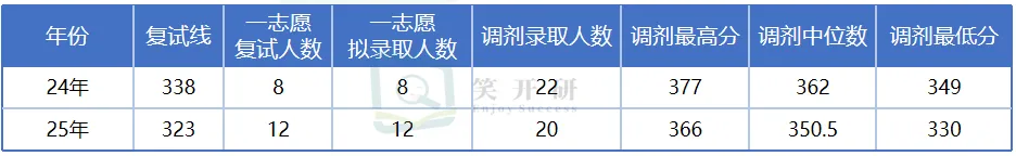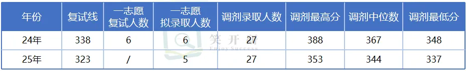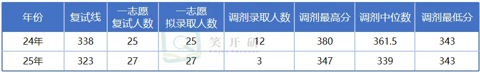 近两年都有调剂名额,调剂录取人数较多,24年调剂最低分比国家线高10分,25年比国家线高14分,调剂热度会有变化,建议比国家线高10-14分的同学也关注一下这所院校