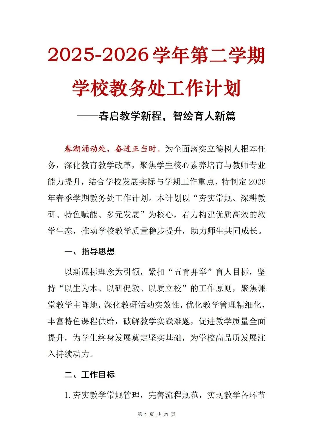 2026年春季新学期教务处工作计划,写好啦!