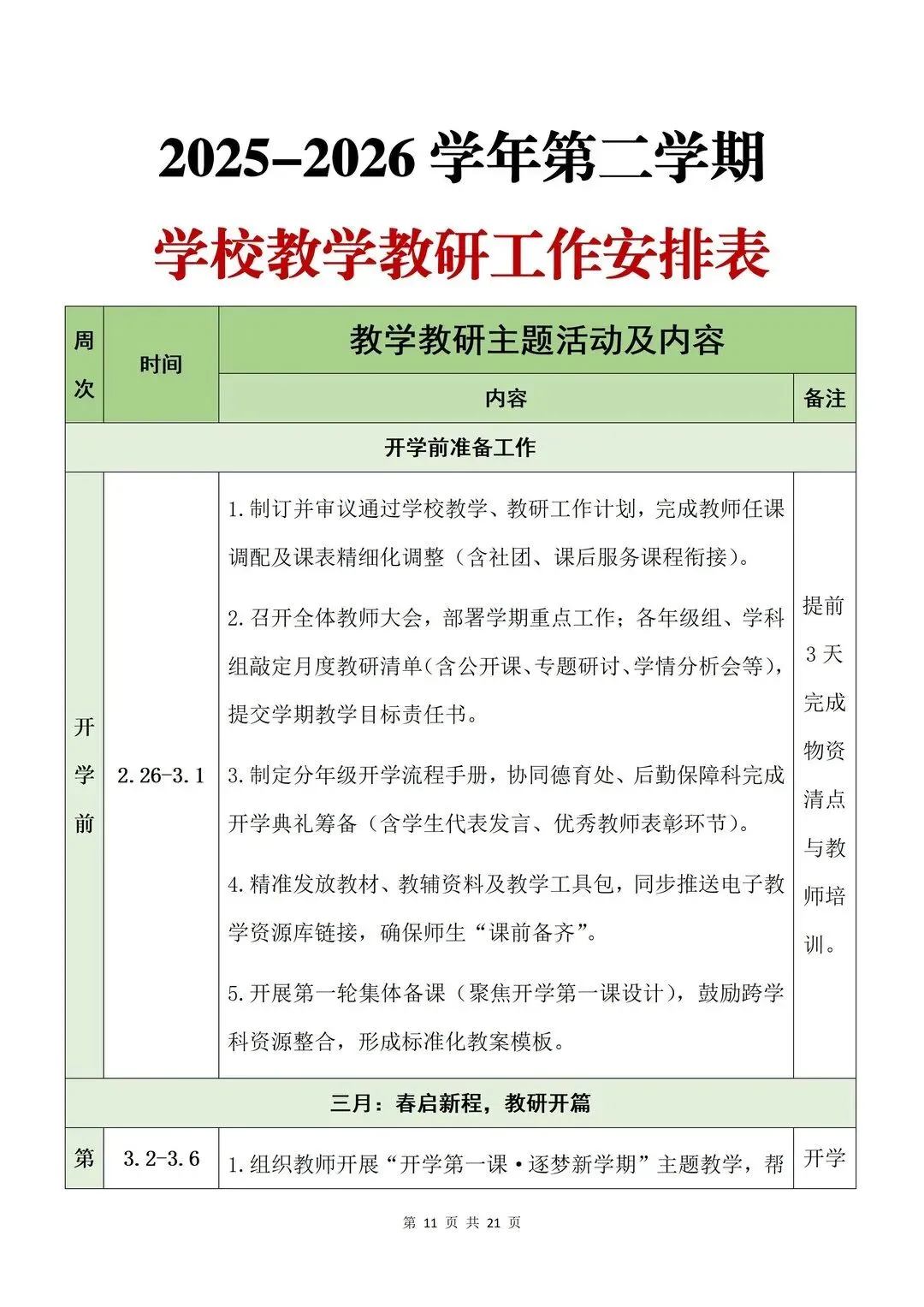 超详细2025-2026学年第二学期学校教务处工作计划每周教学教研工作安排表——春启教学新程,智绘育人新篇