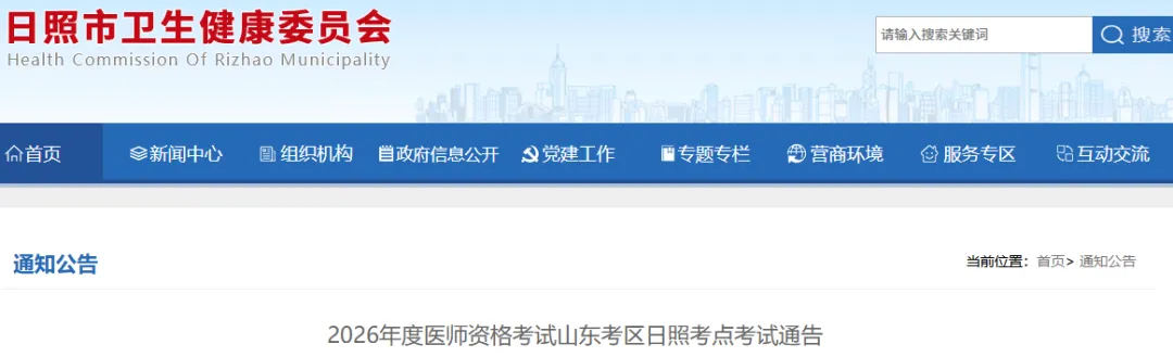 根据《国家卫生健康委员会医师资格考试委员会公告》(2026年第1号)和《2026年度医师资格考试山东考区考试通告》等规定,现将日照考点2026年度医师资格考试有关事项通知如下: