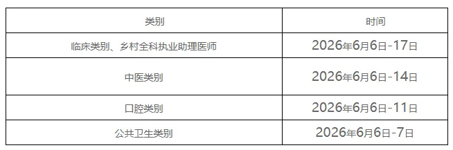 网上报名时间自2026年1月29日10时至2026年2月11日24时。请考生登录国家医学考试网(网址:www.nmec.org.cn),按有关规定如实准确填报个人信息。2025年在国家实践技能考试基地参加实践技能考试,成绩合格但未通过当年医学综合考试的考生,2026年网上报名、资格审核通过后并缴纳考试费后,可直接参加医学综合考试。