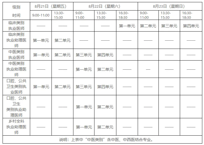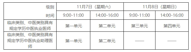 实践技能考试由省医师资格考试领导小组组织实施,在国家实践技能考试基地进行。实践技能考试合格分数线为 60 分。在国家实践技能考试基地参加考试且成绩合格者,成绩两年有效。考试时间如下: