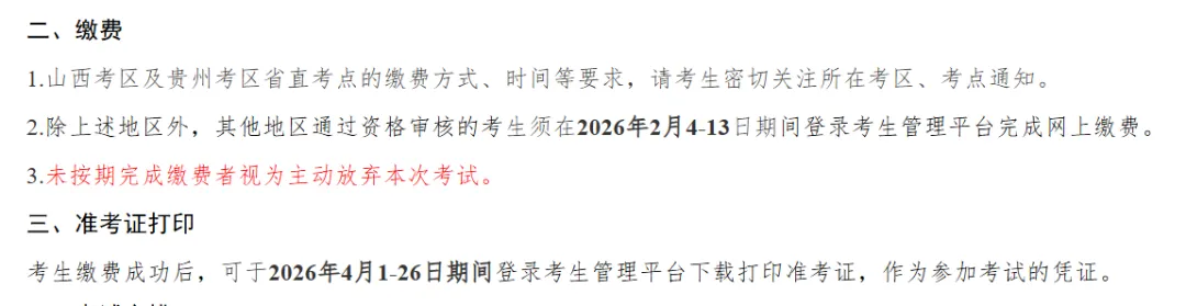 已通过资格审核的考生须在2026年2月4日至2月13日的规定时间内,登录报名系统完成在线缴费。在缴费截止日期(2月13日)前,务必确认缴费状态,确保已成功支付。只有通过考点考区资格审核并且完成缴费之后,才算是2026年卫生资格考试报名成功。各位通过报名资格审核的考生,请务必在规定时间内完成缴费!药学职称考试一年只考一次,报考每一步都很重要,错过将影响25年考试资格!