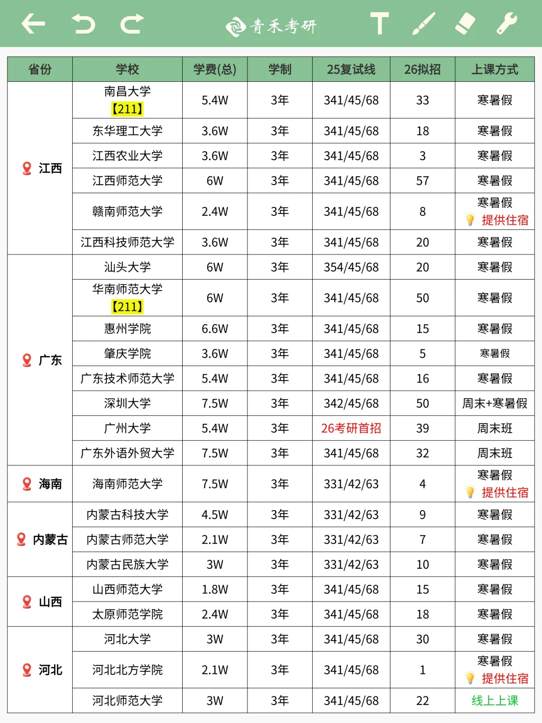 ✅提供住宿的学校有: