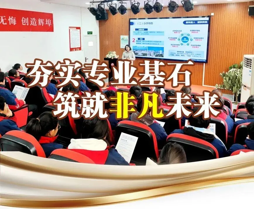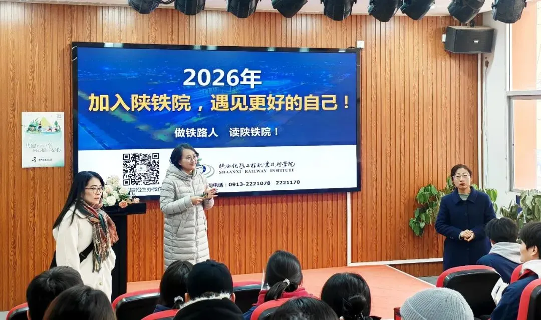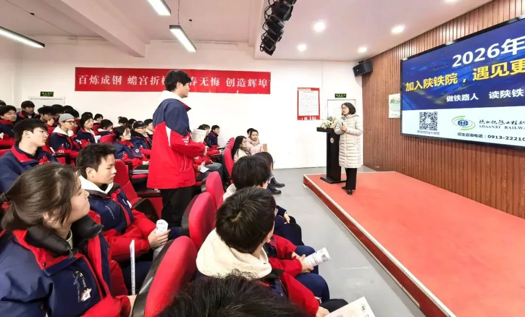 宣讲会上,陕西铁路工程职业技术学院老师系统解读了报考条件、考试内容、录取规则及志愿填报策略,并借助生动详实的PPT,全面展示了学院的办学条件、现代化设施、教学成果与校园文化。学院先进的实训设备、学生在各类技能大赛中的优异表现以及丰富多彩的校园生活,引起了在场学生的浓厚兴趣。