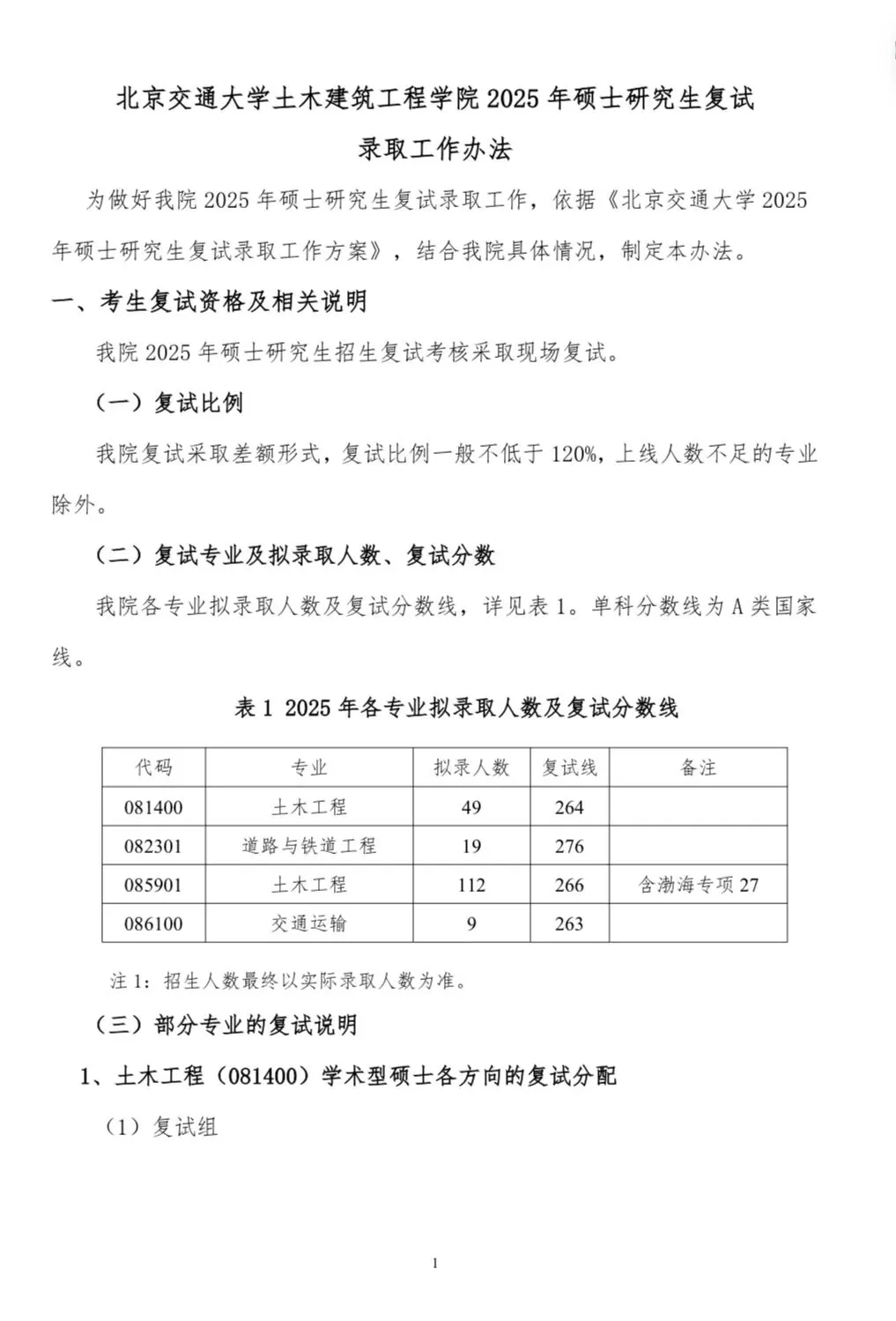 北京交通大学土木建筑工程学院成立于1996年,其前身是1956年成立的北京铁道学院铁道建筑系。211、双一流、第四轮学科评估结果为B+。北京交通大学土木考研 865 结构力学整体难度中等,考察范围明确、题型稳定,对基础扎实的考生友好,高分(130+)易达成,性价比高。下面我们来具体分析一下北京交通大学2025年土木工程专业的录取情况,给26、27考研的小伙伴做个备考参考。