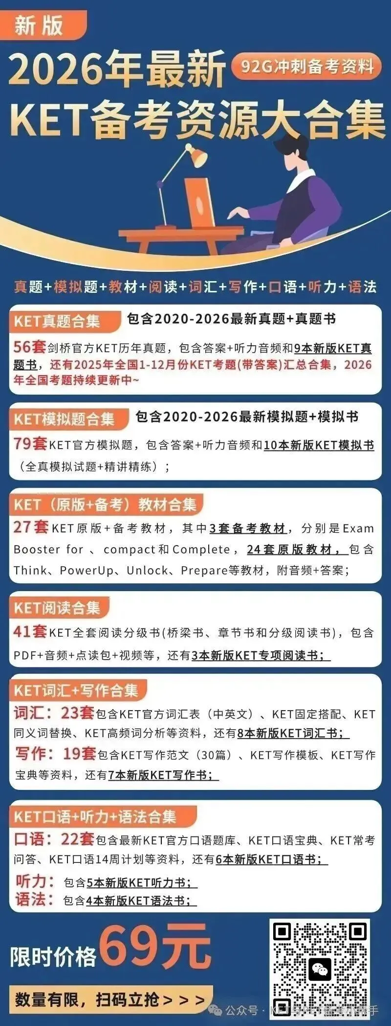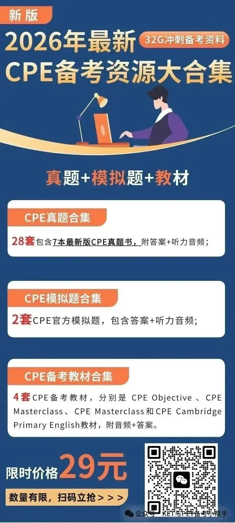 真正有需要的家长,请扫描海报上的二维码直接购买,购买成功后需文末扫码添加『剑桥KPF培训师』微信,提供购买资料的截图,获取对应的备考资源;