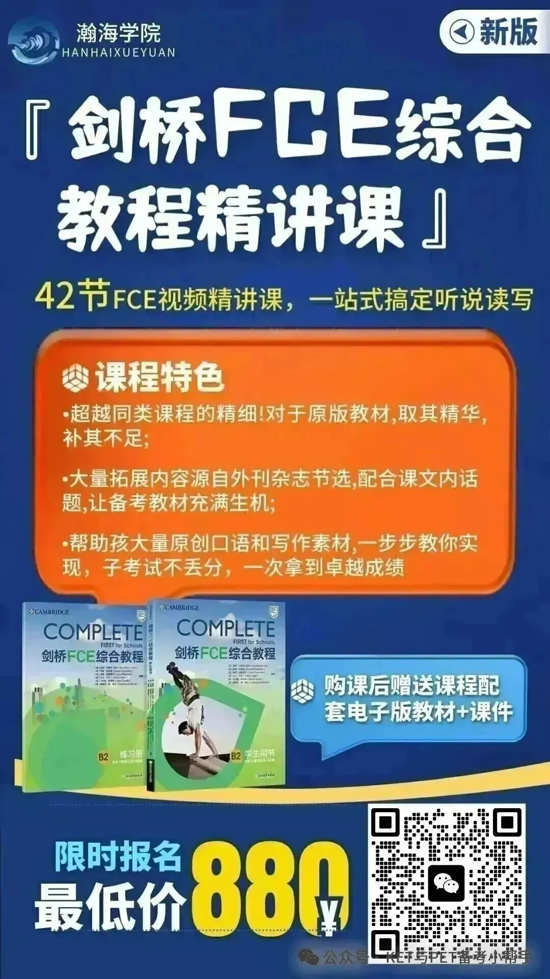 真正有需要的家长,请扫描海报上的二维码直接购买,购买成功后需文末扫码添加『剑桥KPF培训师』微信,提供购课截图,获取对应课程教材+课件;