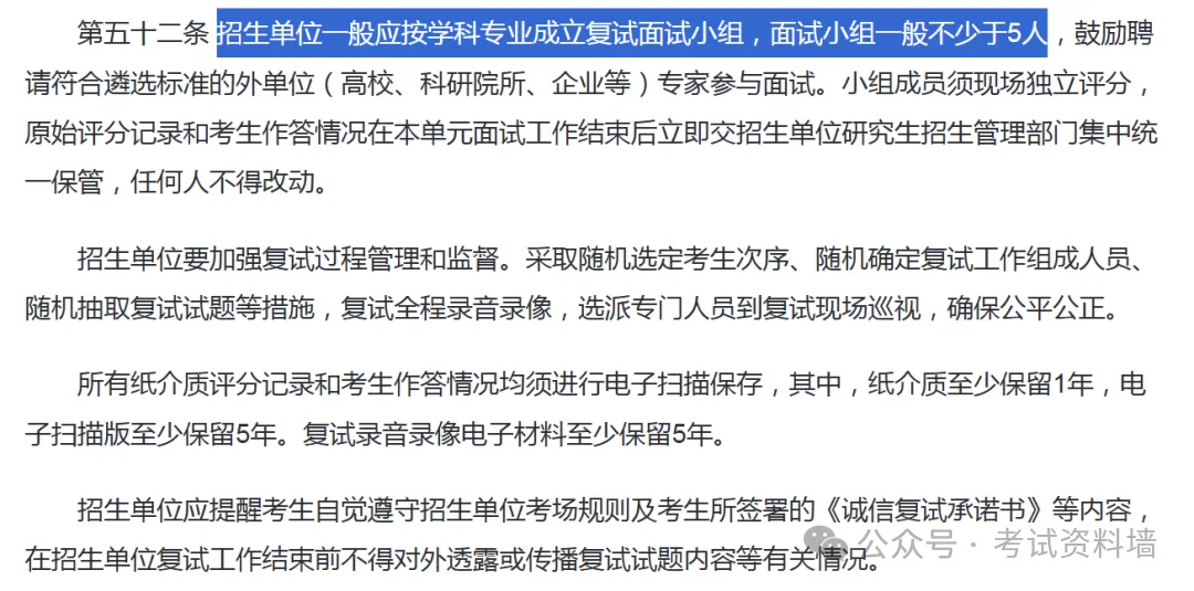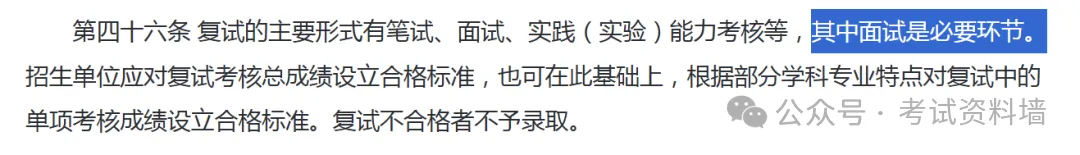 往年,考研复试并未明确要求必须包含面试,而今年明确:复试主要形式含笔试、面试、实践(实验)能力考核,面试为必要环节。