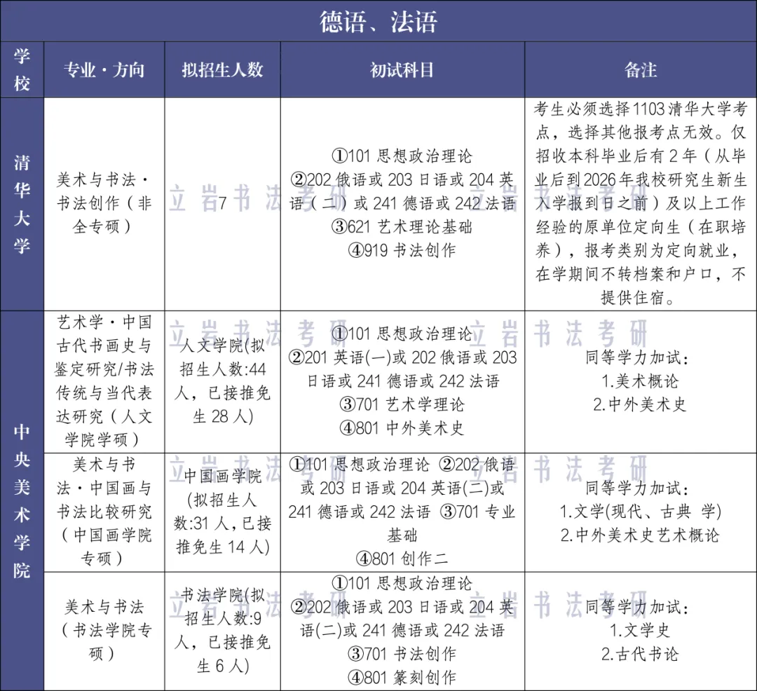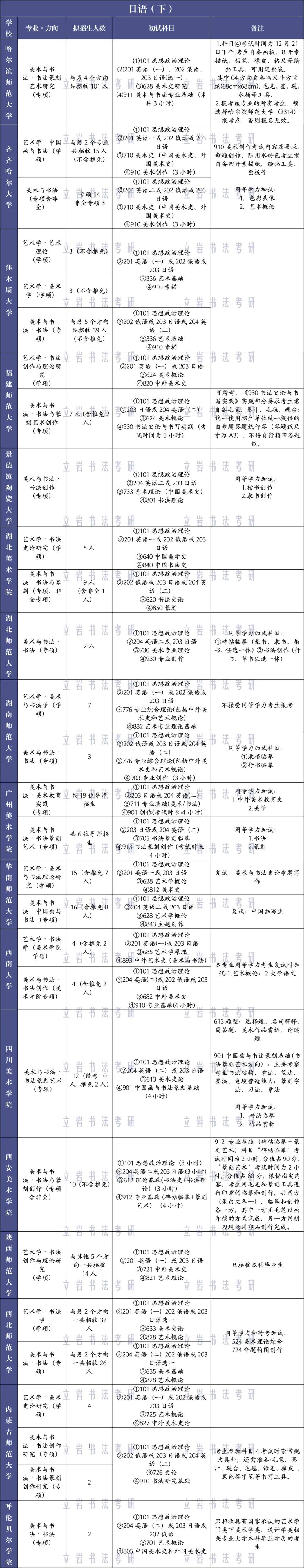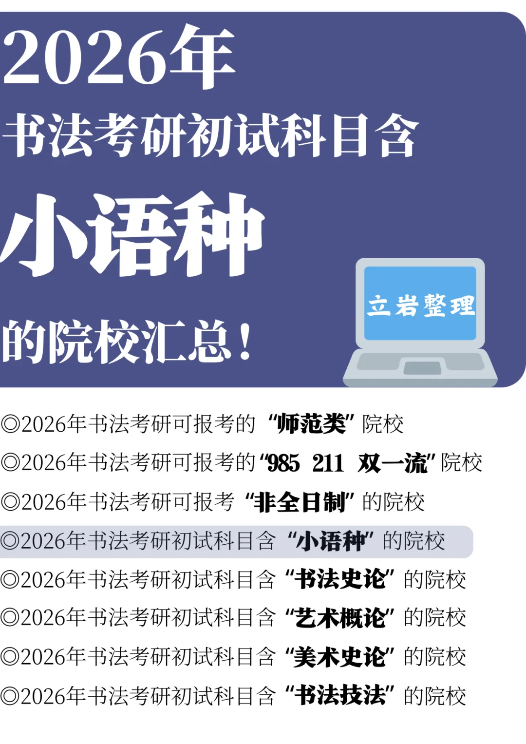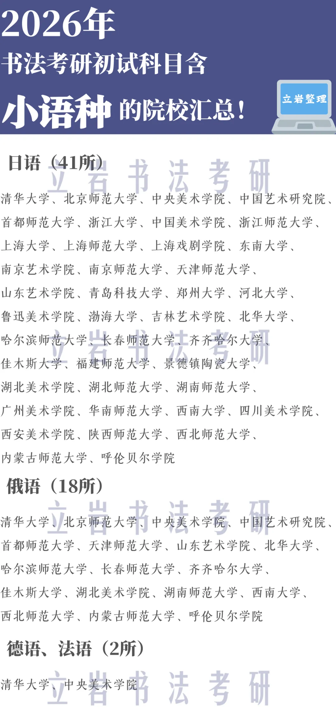 如需查阅书法考研初试科目中含“小语种”的院校,可保存下图~👇