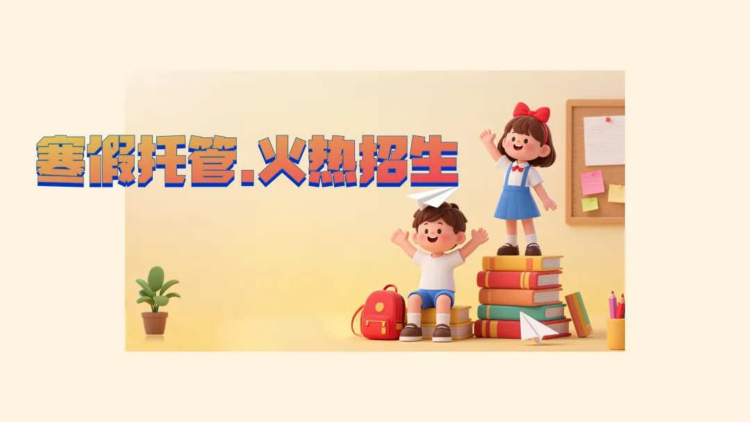 寒假到了,家长上班没空管?孩子在家沉迷电子产品?别担心!我们的寒假托管班来啦,专业师资 + 贴心照料 + 趣味学习,让孩子度过一个安全、充实、有收获的寒假,家长安心工作无后顾之忧!