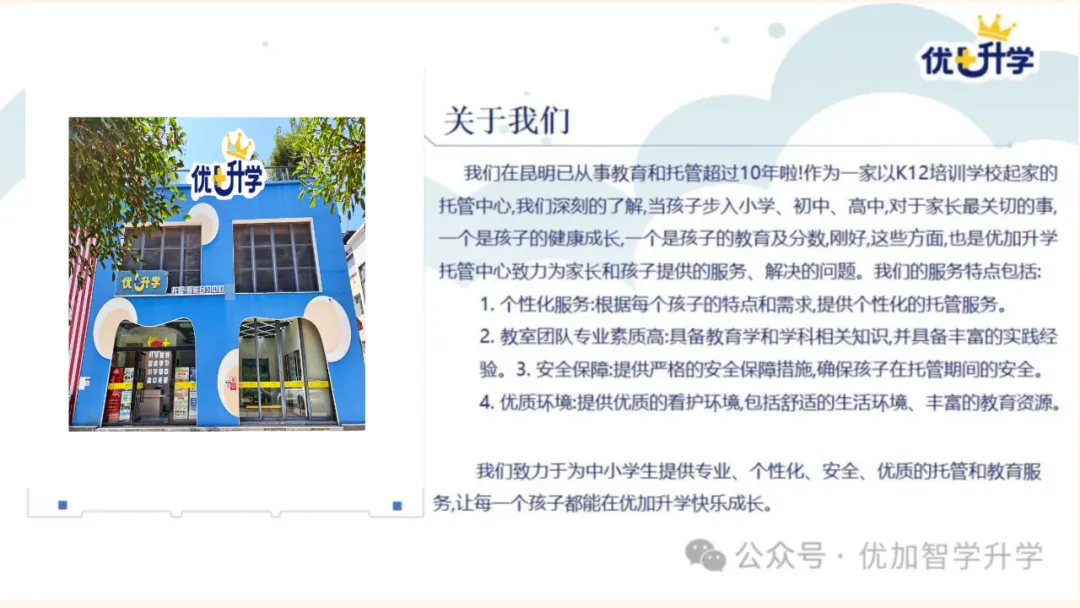 📍 托管地址:五华区霖雨桥瑞丰龙美食广场7栋 优加升学规划中心