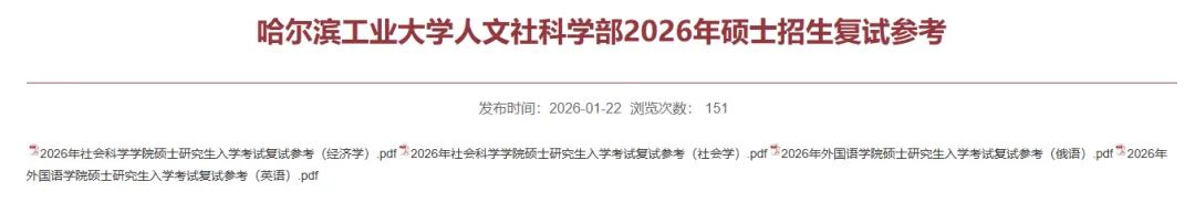 哈尔滨工业大学人文社科学部发布2026年硕士招生复试参考。