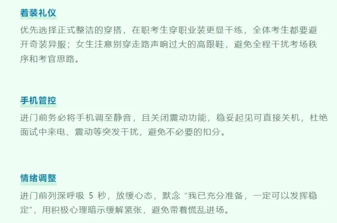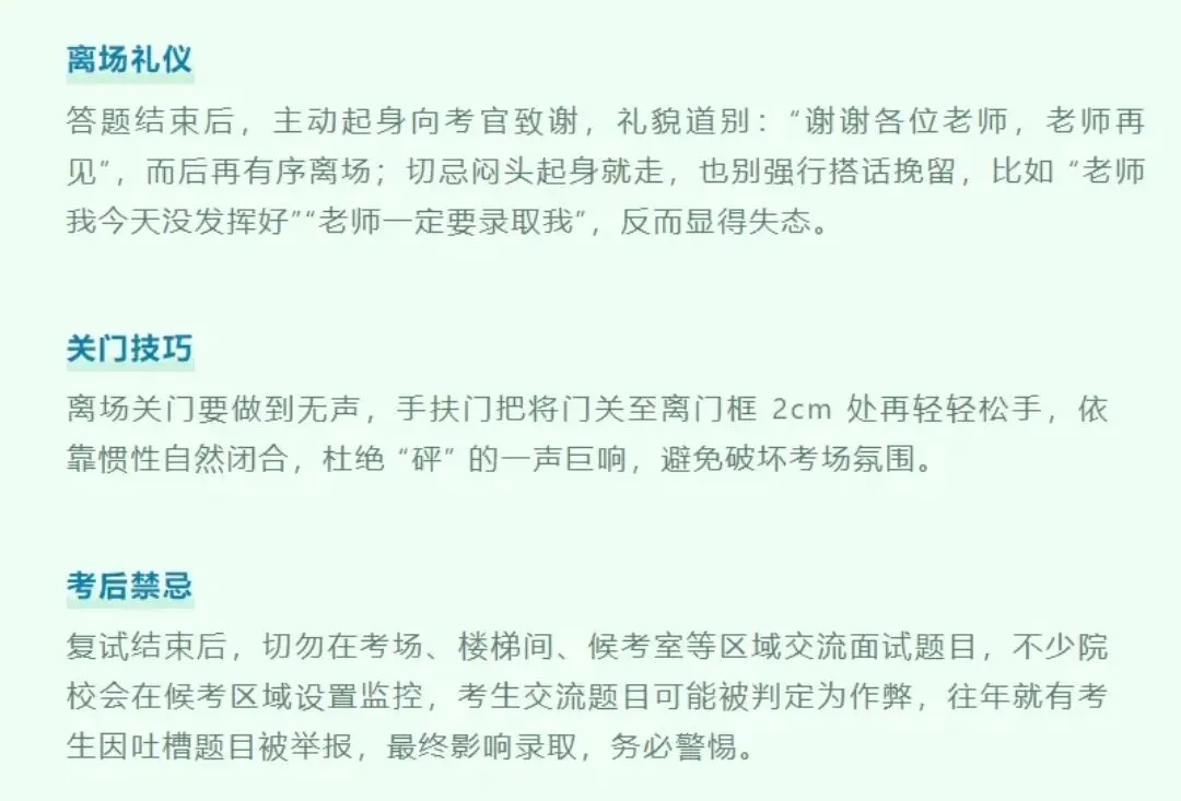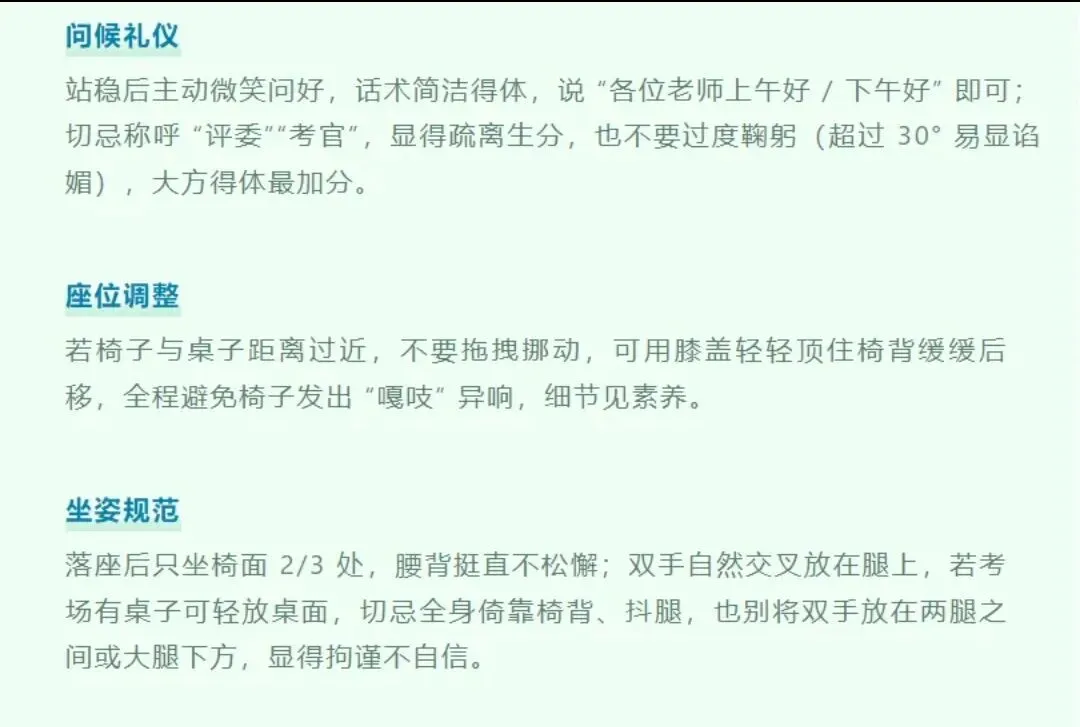 尤其对于报考院校有复试淘汰率的同学来说,专业知识是复试根基,而那些容易被忽略的小细节,往往是拉开差距、决定成败的关键。今天就为大家梳理从复试进场前到出场后的 20 个核心细节,帮你从容应对面试,稳稳拿捏印象分!