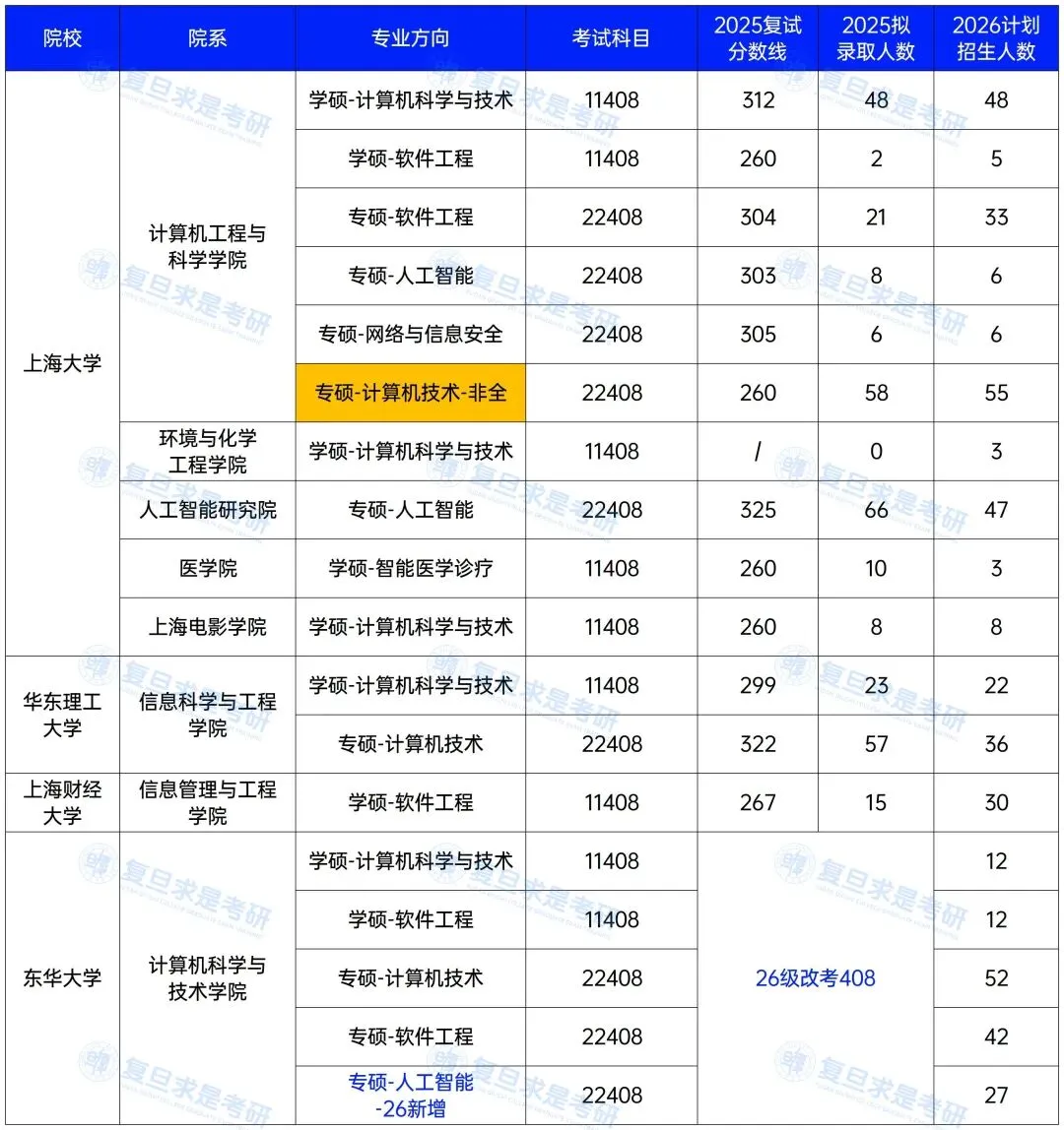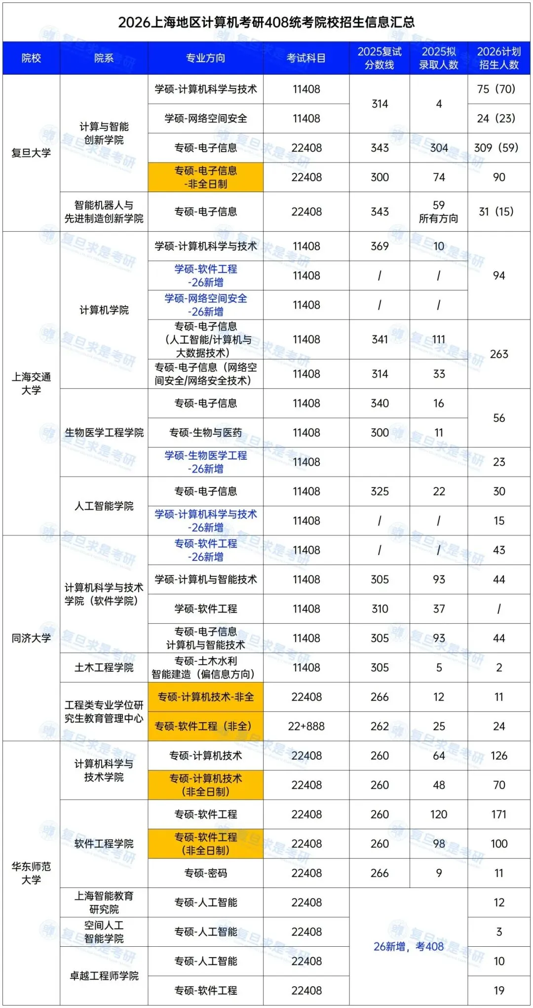 目前上海地区211高校有上海大学、华东理工大学、上海财经大学、东华大学4所高校计算机相关专业考试科目为408;其中东华大学408高校2026级全面改考408,;