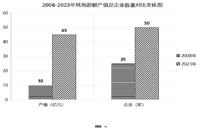 我国有三大游艇制造基地,分布于环渤海、长三角、珠三角三个区域,其中珠三角是我国游艇产业起步最早、集群效应最显著的区域,珠海平沙游艇工业园区是国内最大的游艇制造基地。图2为“2008—2023年珠海游艇产值及企业数量对比变化图”。据此,完成3-4小题。