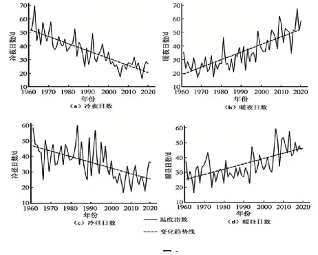 近60年来,受多种因素影响,青藏高原极端气候事件不断增多。图3展示了 1961-2020 年青藏高原昼夜极端气温的变化趋势。据此,完成7-8小题。