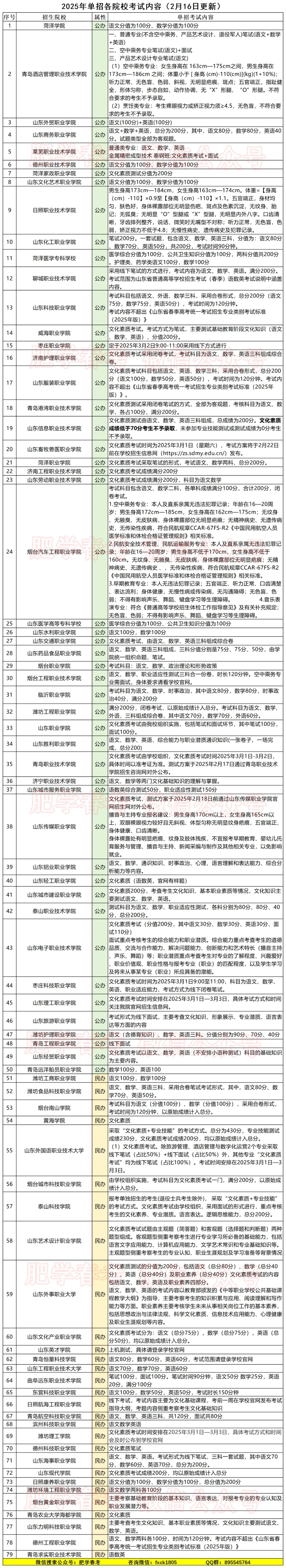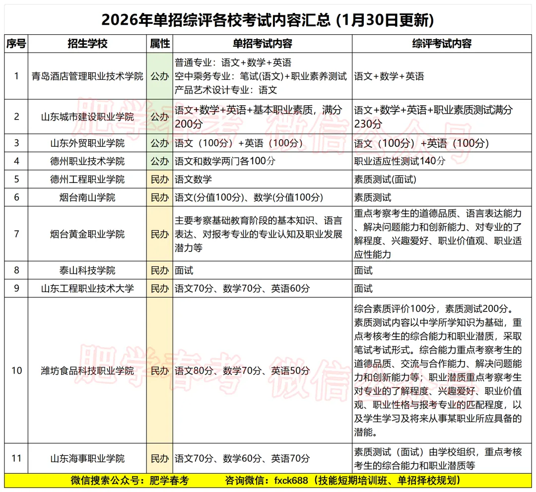 2026年单招各校考试内容(1月30日)