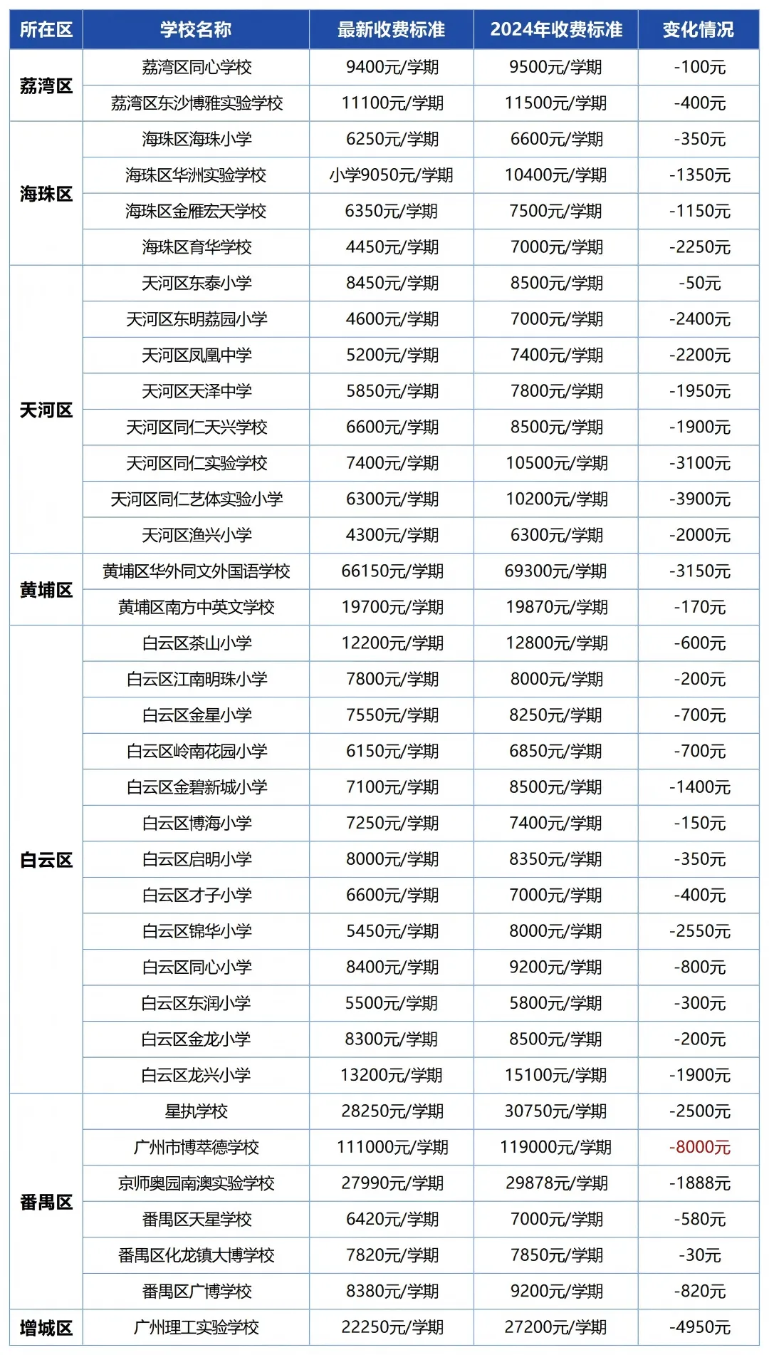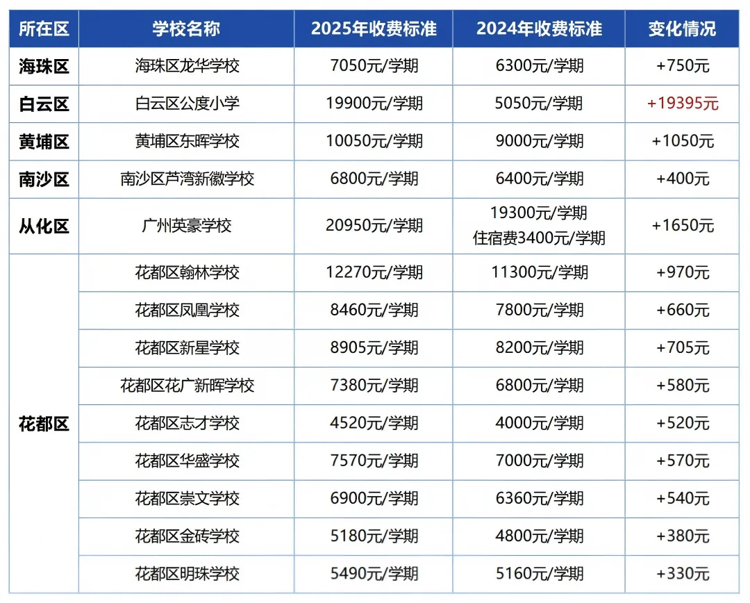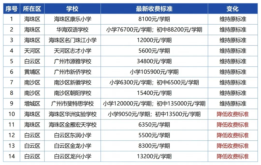 近期,广州市发改委又批复了多所民办学校的收费标准,不少学校学费有变动,为大家汇总了最新的学费涨跌情况,一起来看看吧!👇