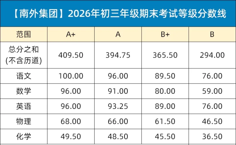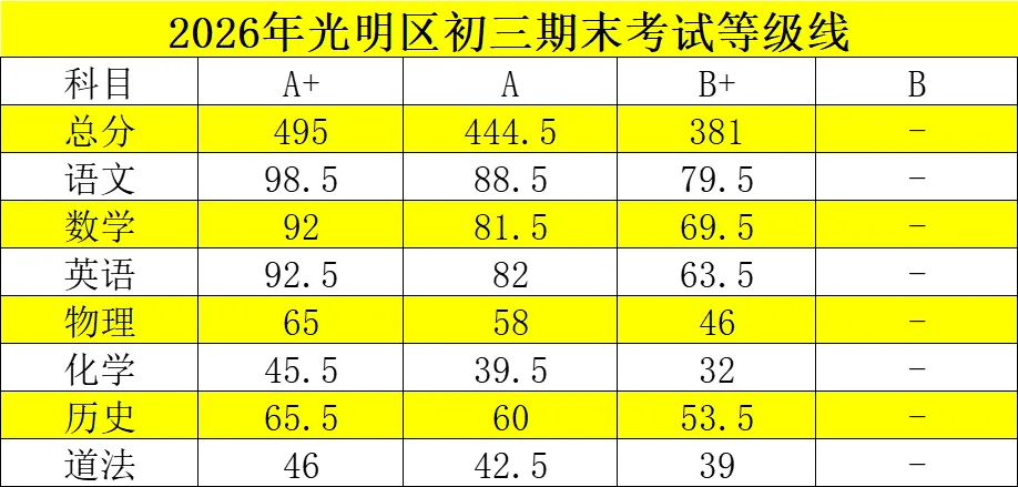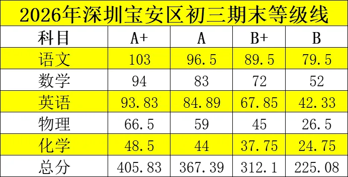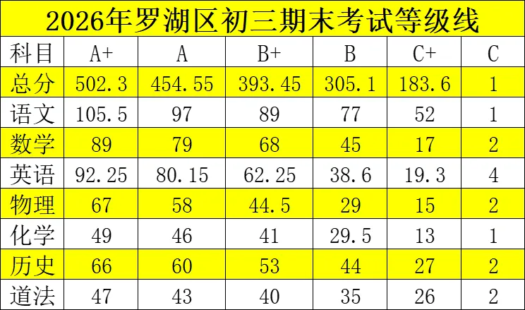 据家长及网传消息,红岭集团2026初三适应性考试(期末)等级线全科等级线已公布。