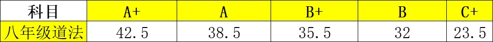A+线:语文105.25、数学96、英语94.7、物理67.5、化学48.5、历史61.5、道法44