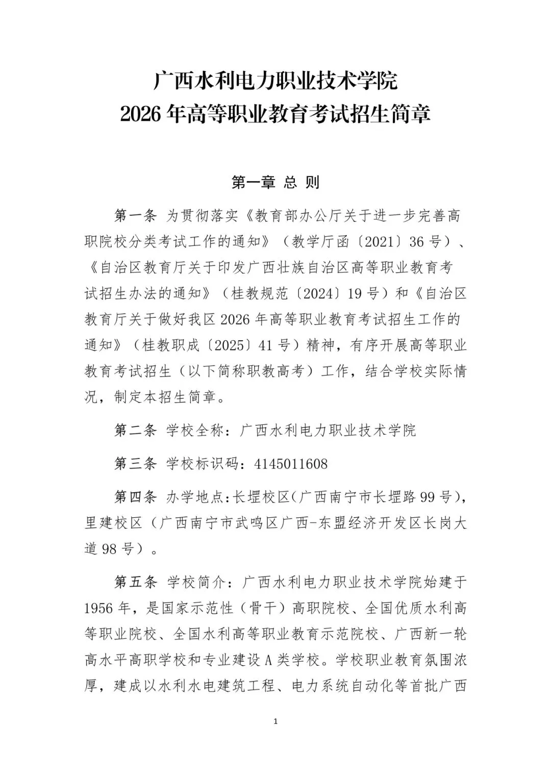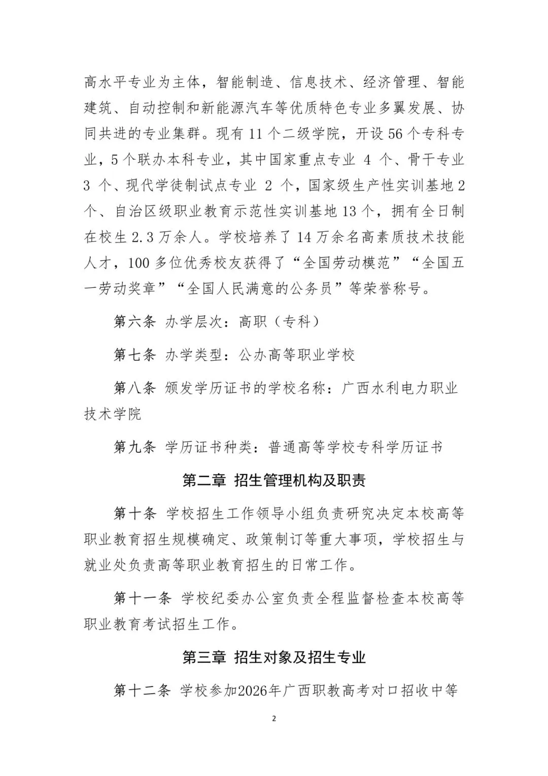 广西水利电力职业技术学院2026年高等职业教育考试招生简章.pdf