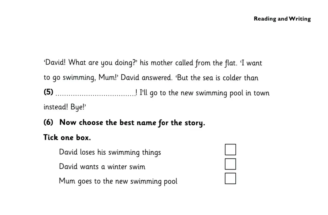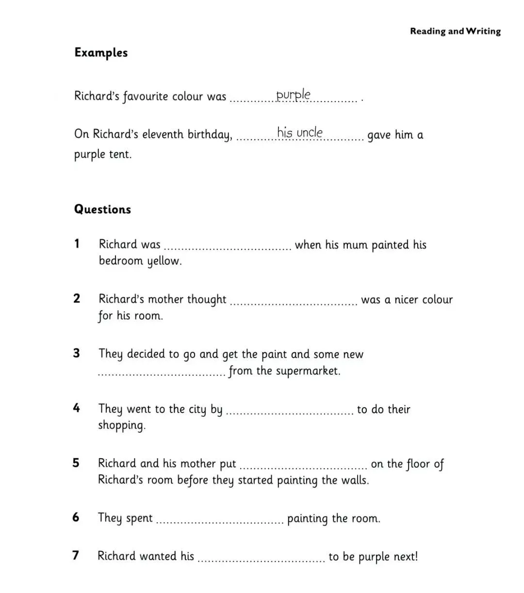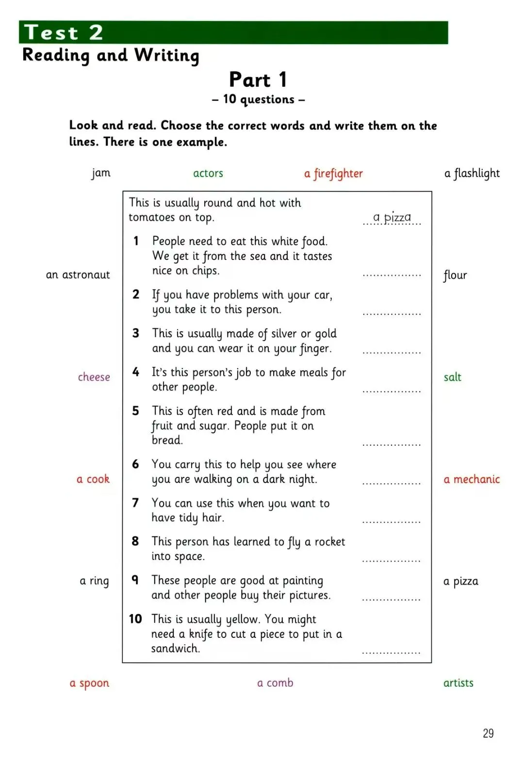 A2 Flyers 阅读和写作测试分为七个部分。每个部分都以一两个示例开头。对于阅读和写作测试的所有部分,孩子们必须正确拼写它们的答案。