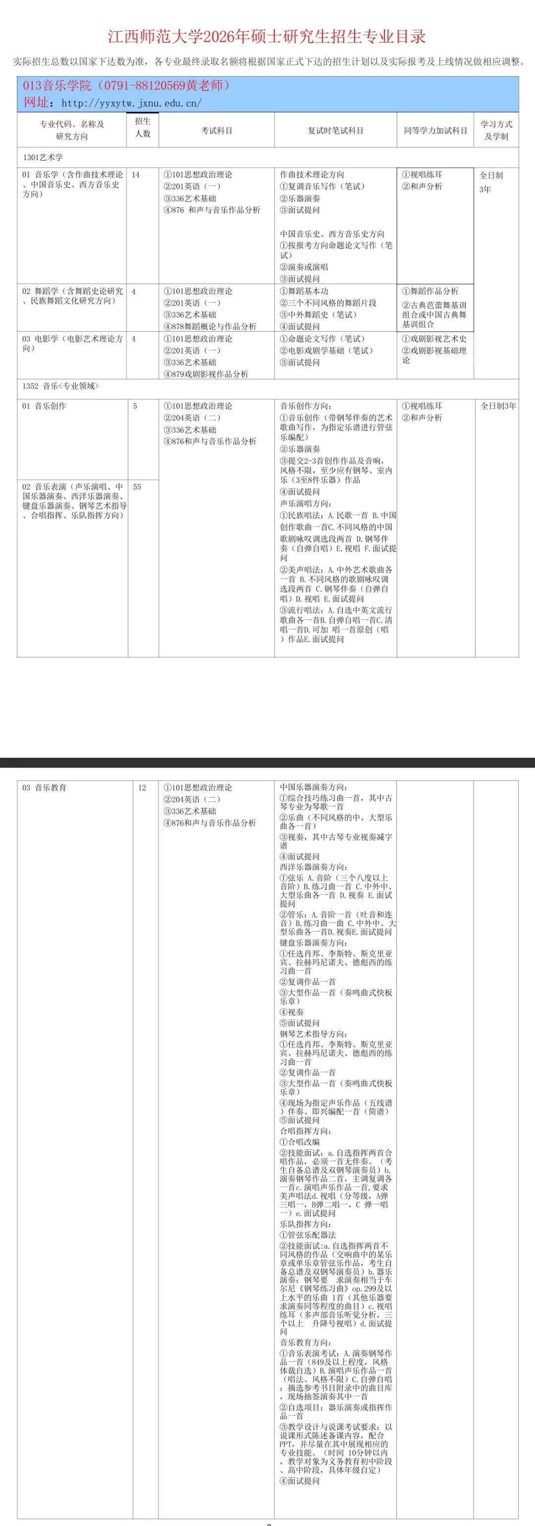 音乐考研|简章速查系列