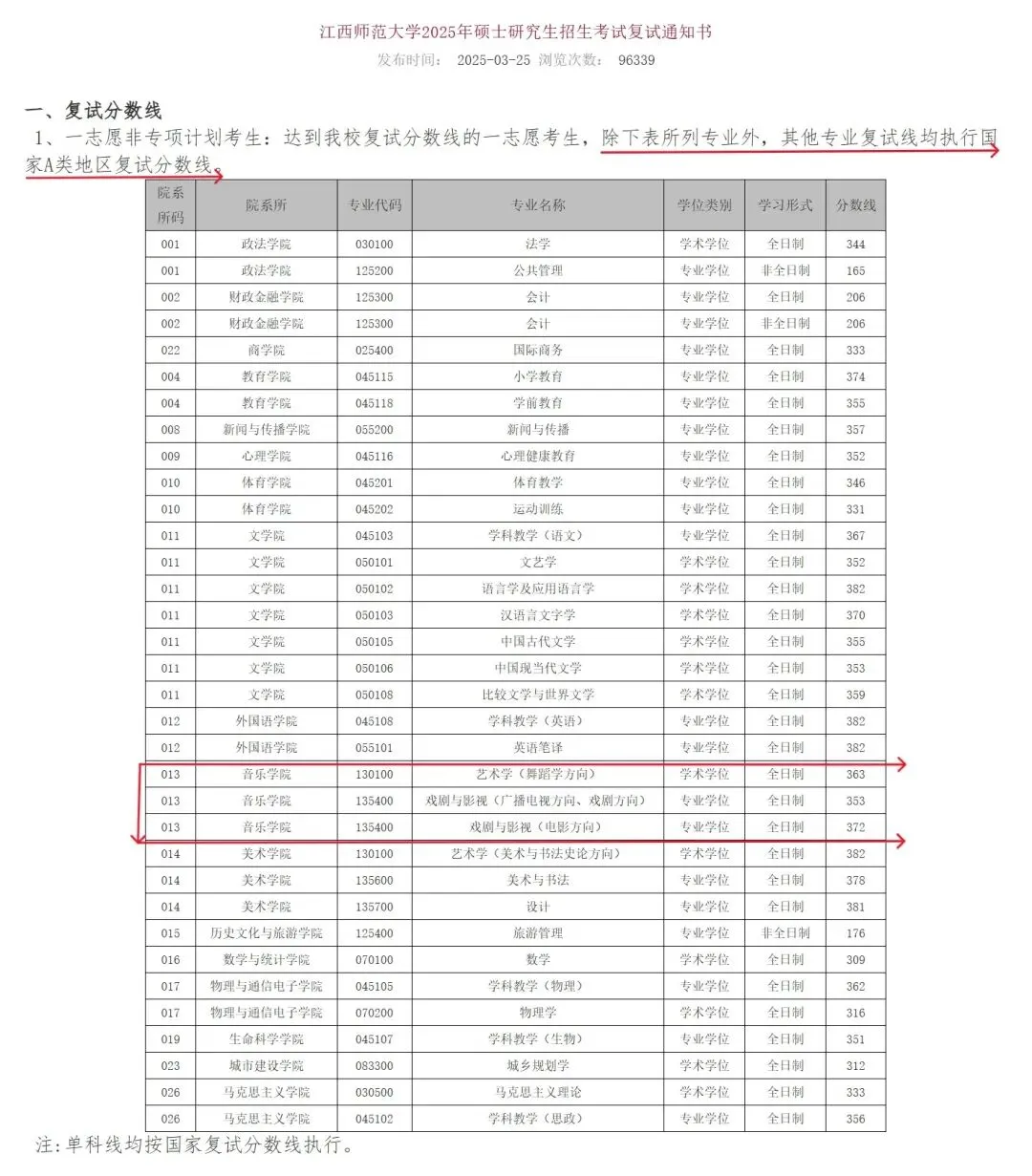 艺术学(音乐学方向)、音乐表演、音乐教育、音乐创作均为当年A区国家线 即351分