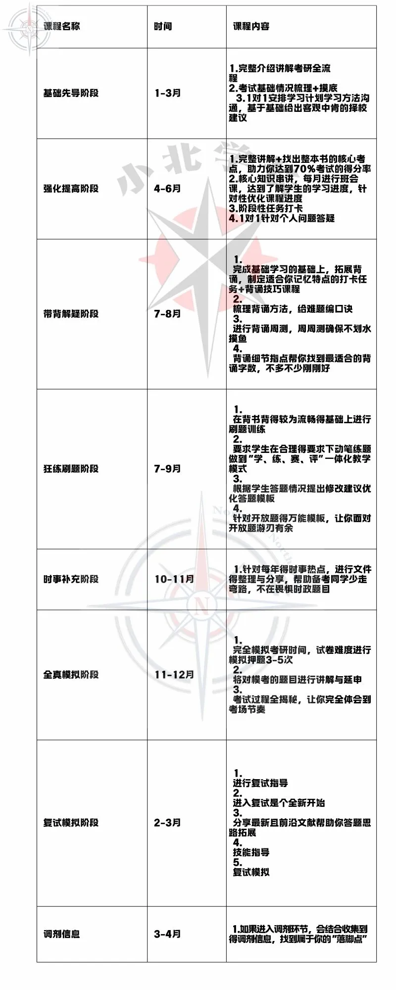 分阶段教学:清晰划分基础夯实、强化提高、真题精讲、冲刺模考、复试指导等阶段。