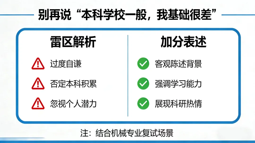 复试成功的关键,是让复试评委看到 “你是能沉下心做事情、有规划能落地、懂感恩好相处” 的同学,以上话术不是让你们背模板,而是帮你们理清思路 —— 结合自己的课程设计、实习、正在进行的毕业设计经历,真诚表达就好~