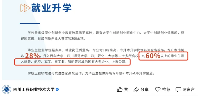 高考报考中,相当多的考生和家长都存在一个认知误区:考不了高分就没有好学校上了。大多数情况下确实是这样,但是,很多人都不知道的是,我国3000多所各类高校中,存在着很多低分就能上,就业质量却极高的宝藏大学。今天升哥给大家分享的就是3所这样的大学,2025年高考录取中不到500分就能上,就业一点不比985差!如果咱们家里有今年以及之后高考的孩子,可以好好看看这篇文章,高考结束志愿填报时或许能用上。长春工程学院位于吉林省长春市,别看人家仅仅只是一所“学院”,实际上,这所高校拥有的背景和资源可是比很多“大学”都要强上不少!即其是赫赫有名的“原电力部直属本科高校”之一,直白一点就是国家电网的亲儿子!毕业生就业质量极高,学校发布的最新就业数据显示,2024届毕业生有54.5%都在国有企业就业,主要是国家电网、中国电力建设集团、各省市电力公司等大型企业。这个国企就业率,别说是普通的学院,就算是跟985比,也是丝毫不差。而且电力这一行有多香大家或多或少肯定都知道一些,不说大富大贵,安稳一点奔个小康肯定是没问题的。更关键的是,这么好的一所大学,录取分数可是一点都不高!以2025年高考录取为例:吉林物理类机械设计制造及其自动化最低录取分为492,广西物理类能源与动力工程最低录取分仅为428,湖南物理类智能电网信息工程最低录取分为472,安徽物理类水利水电工程最低录取分为486。升哥说句不中听的,如今400多分哪还能上个好学校啊!很多地方估计连公办本科都够呛!所以这所高校升哥真的非常推荐!强烈建议成绩一般的普通家庭考生重点看看,起码未来大概率不用愁就业。山西工程技术学院这个校名看上去确实让人感觉不咋的,又是工程又是技术的,一看就不像什么好学校。具体来看,山西工程技术学院的前身是公办二级学院—太原理工大学阳泉学院,2014级之前,毕业证都是由太原理工大学颁发的,当时很多人都冲着这一点争相报考,那段时间也是学校最风光的时候。只可惜后面为了走独立办学的路子,在2014年更为现名。而没有了211光环,大家也都不再愿意报考,到现在已经变得特别默默无闻。不过从学校现在的整体实力和就业水平来看,还是相当值得大家重点了解一下!学校最新的就业数据显示,2024届毕业生有60.6%都在国有企业就业!主要就业单位包括中国电建集团核电工程有限公司、中煤矿山建设集团有限公司、山西焦煤集团有限公司等大中型央国企。讲真升哥第一眼看到这所高校也觉得不怎么样,后面一看就业,用一句话形容就是:同样的,这所高校的录取分数线也不高,2025年高考录取中,广西物理类电气工程及其自动化最低录取分仅为427,吉林物理类智能制造工程最低录取分仅为432,湖南物理类自动化最低录取分为456,陕西物理类机械工程最低录取分为470。说实在的,这所高校很好,有意向的考生及家长可以再详细了解一下。四川工程职业技术大学是最近几年才刚刚兴起的职业本科高校。但是升哥说句真心话,并非所有的职本都那么不堪,相当一部分职本并不比普本差。四川工程职业技术大学就是这样一所高校,单是就业方面,就能秒杀绝大多数普本!这样一所高校,难道还要因为出身问题而被瞧不起吗?很多时候真的没有必要。况且学校的录取分数线也是不高,以2025年高考录取为例:山西物理类电气工程及自动化最低录取分为471,吉林物理类智能制造工程技术最低录取分为436,山东智能制造工程技术最低录取分为489。最后预祝大家都能在2026年高考中取得一个理想成绩!注:本文部分内容来源于网络,如有不实或者表述不当之处,欢迎大家及时指出!侵删!