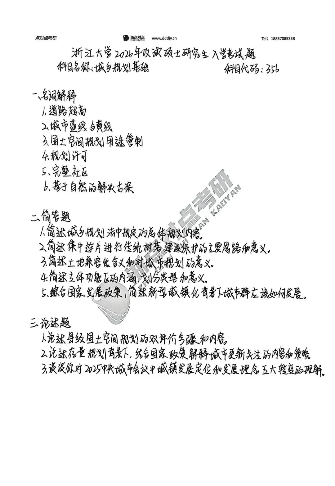 浙江大学2026考研356城乡规划基础、